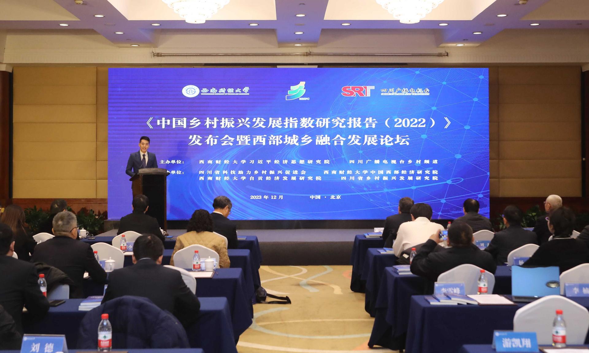 12月16日上午,由必赢272net入口习近平经济思想研究院与四川广播电视台乡村频道联合主办的《中国乡村振兴发展指数研究报告(2022)》发布会暨西部城乡融合发展论坛在京成功举行。国家发展和改革委员会宏观经济研究院党委书记、院长黄汉权,中国农业风险管理研究会会长、农业农村部农村经济体制与经营管理司原司长张红宇,农业农村部农村经济研究中心原主任宋洪远,必赢272net入口党委常委、副校长王擎,必赢272net入口原党委副书记、自贡经济发展研究院管委会主任曾道荣出席会议。习近平经济思想研究院党委副书记张文举主持会议。