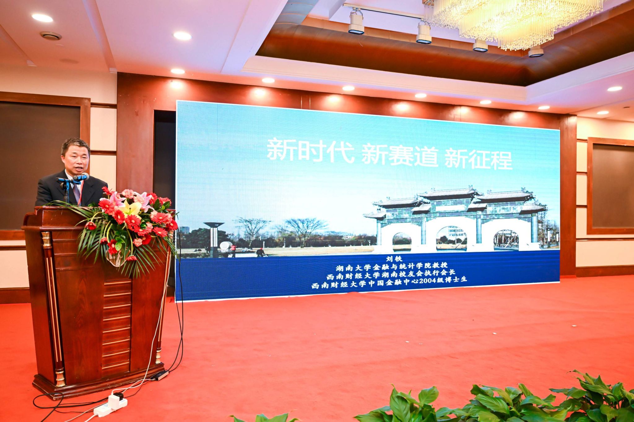 湖南校友会执行会长、湖南大学金融与统计学院教授刘轶在成立大会上致辞,表示湖南校友会的成立秉承了母校校友总会的宗旨,响应了广大在湘校友的期待,也寄托了母校对湖南校友工作的厚望。湖南校友会将不断加强自身建设,为母校发展贡献更多校友力量,在湖南经济社会发展中发出更强必赢声音,讲好更精彩必赢故事。随后,刘轶以“新时代 新赛道 新征程”为题发表了主题演讲。
