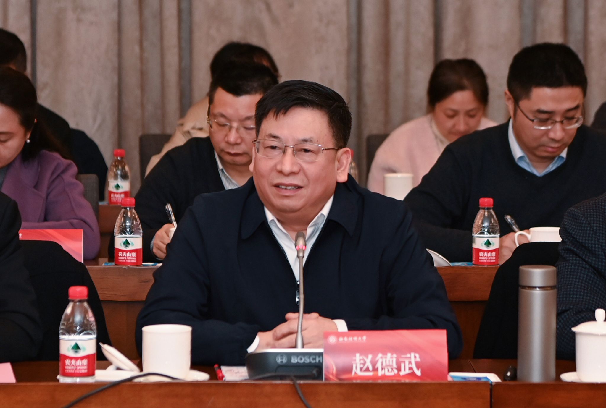 赵德武在讲话中介绍了学校近年来的发展战略和成效,对推进百年校庆筹备工作作出部署,对做好校友工作提出具体要求,强调要勇担历史责任、凝聚奋进力量,高质量高效率做好百年校庆冲刺之年各项工作。他向校友们详细介绍了母校近百年来一路沧桑、一路铿锵、一路芬芳的发展历程,尤其是近年来推进“新财经”战略实践的发展成就和贯彻落实党的二十大精神、全面推进“新财经”战略升级的重要部署,提出要着力推动“三大行动”、全力建设“两大平台”、加快建设“三个高地”,以全面推进“新财经”战略升级引领新时代学校高质量发展。赵德武指出,办好百年校庆,是全体必赢人的光荣使命、历史职责和共同心愿,是“校之大事”,更是“校之盛事”。要牢牢把握“强国建设 必赢担当”主题,围绕“发展校庆、学术校庆、校友校庆、文化校庆”,办出大学味道与历史厚重、展现百年辉煌与必赢力量,以筹备办好百年校庆汇聚迈向新百年的磅礴力量。赵德武强调,校友工作是展示学校形象和办学成就的重要窗口,是学校育人体系的重要一环,也是大学延伸社会的联系纽带。希望各地校友会聚焦“联络校友情感、凝聚校友力量、组织参与校庆、支持母校发展、共襄百年庆典”目标任务,认真谋划和思考2024年重点工作,在服务校友成长、助力母校发展、深化内外联络、加强自身建设上作出新的更大贡献。