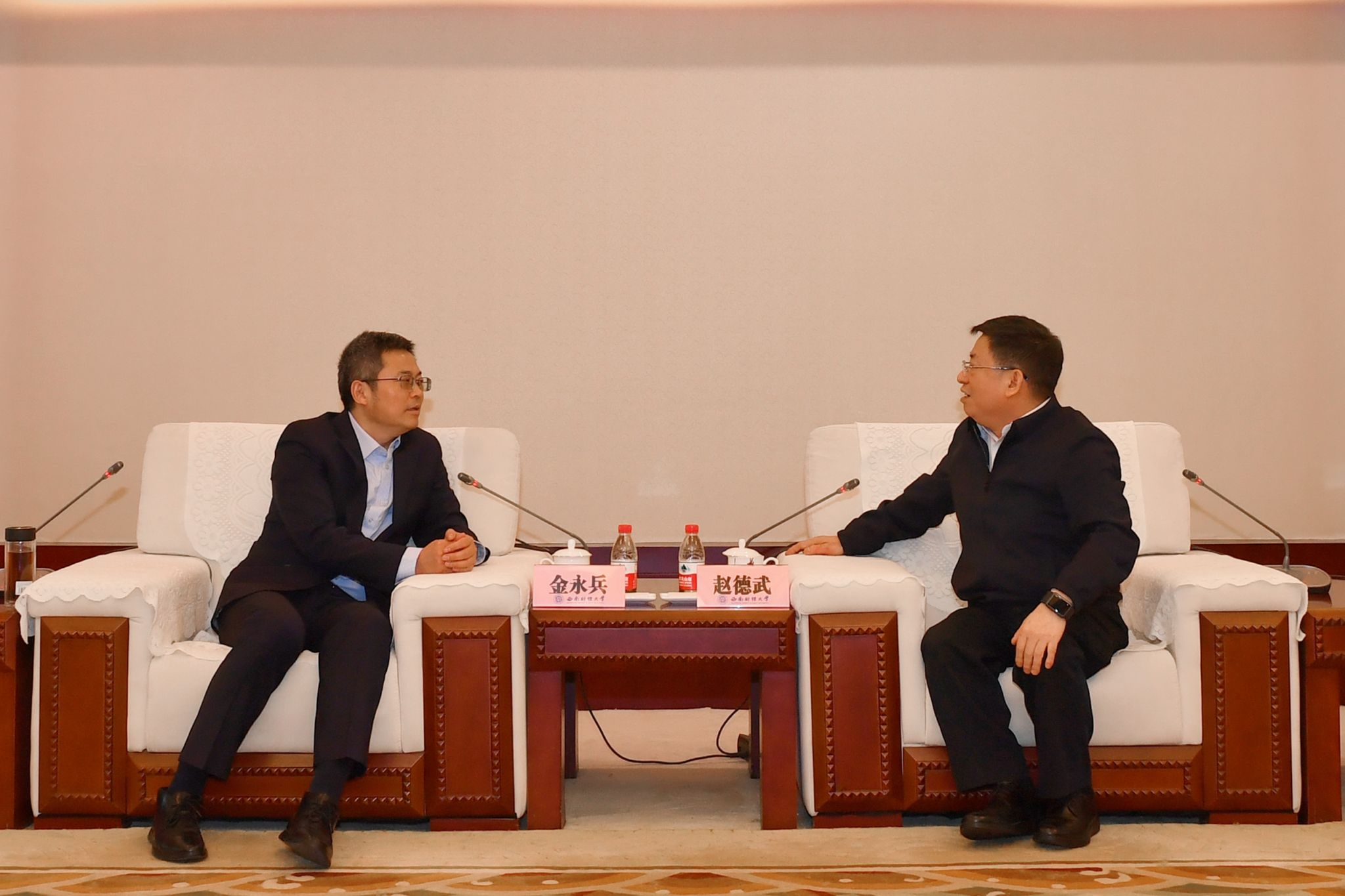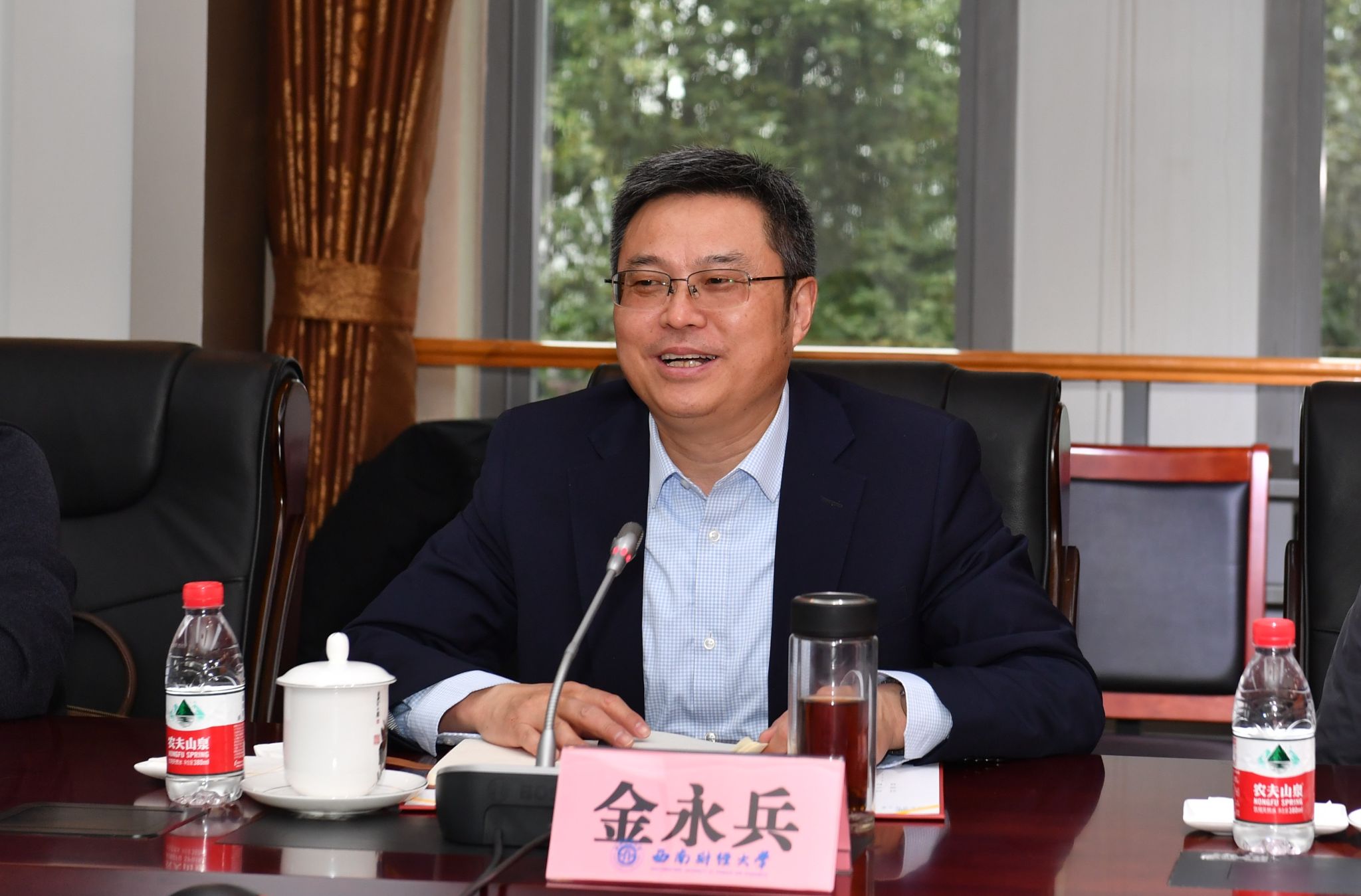 赵德武对金永兵一行表示热烈欢迎,简要介绍了学校办学历史和基本概况,重点介绍了学校全面推进“新财经”战略升级,着力推进一流学科培优、财经科技创新、人才引领支撑,高标准、高质量建设两大集成创新平台的战略实践。赵德武表示,两校同处西南地区,有着深厚的友谊,希望双方以此次交流为契机,就边疆安全研究等领域加强合作,共同服务国家重大战略需求。