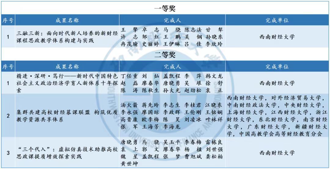 深化“新财经”人才培养模式改革,完善本科生德智体美劳五育融合培养体系。深化与电子科技大学人才联合培养,构建跨校本-硕-博贯通培养体系;强化财经专业交叉融合,建设数字贸易等8个微专业,推动全部专业改造升级。17门、46门课程分别获批国家级、省级一流本科课程,7门全英文课程上线国家智慧教育平台国际版,2门课程“出海”印度尼西亚,3个案例分别入选“慕课十年典型案例”“中国高校远程与继续教育优秀案例库”。建立建强研究生教育支撑体系,建成研究生教育数字资源平台,教育部研究生层次中外合作办学项目实现突破。深化博士生招生与培养改革,全面实行招生“申请-考核”制,“两大平台”按照“平台主阵地,学科大视野,团队育英才”思路开展有组织高层次人才培养。优化继续教育人才培养课程建设,不断提高继续教育人才培养质量。开设“鲲鹏”创业实验班,28个项目获批教育部产学合作协同育人项目。新增国家级教学成果奖5项,其中一等奖1项;获批四川省高等教育人才培养和教学改革重大项目7项,荣获四川省第二届就业创业教学比赛特等奖、一等奖。