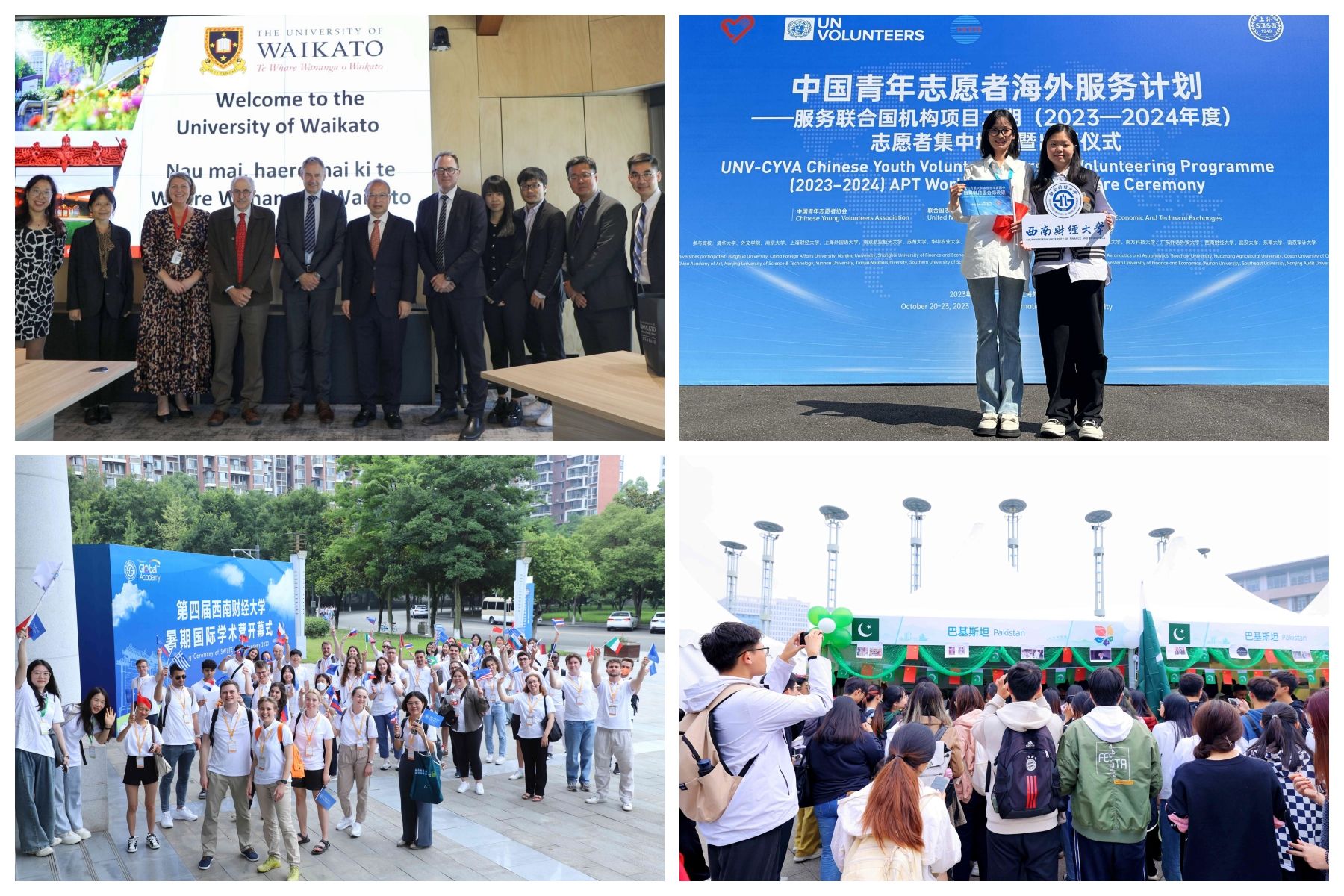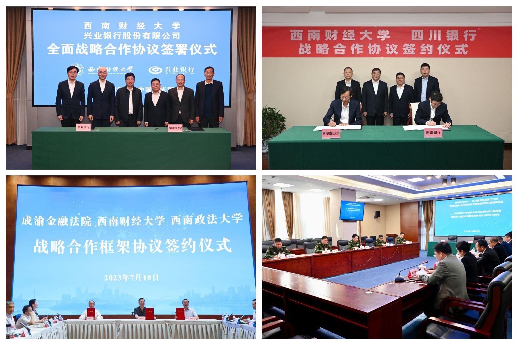强化与农业农村部、“一行一局一会”等合作,推动成渝地区政产学研协同融合创新实践,与中国人民银行征信中心、深交所、上交所、兴业银行、成渝金融法院、四川省军区政治工作局等多方开展战略合作与共建。全面推进高水平教育对外开放,新增莫斯科新经济学院等“一带一路”沿线国家高水平合作伙伴5个,举办北马其顿圣基里尔·麦托迪大学孔子学院建院十周年庆典、第四届暑期国际学术营、“一带一路”共建国家青年“汉语桥”夏令营等文化交流活动。与意大利罗马第一大学合作举办的金融学专业博士研究生教育项目获教育部批准。获评四川省科技创新引才引智先进基地,21名学子赴联合国工业发展组织等国际组织实习或工作。