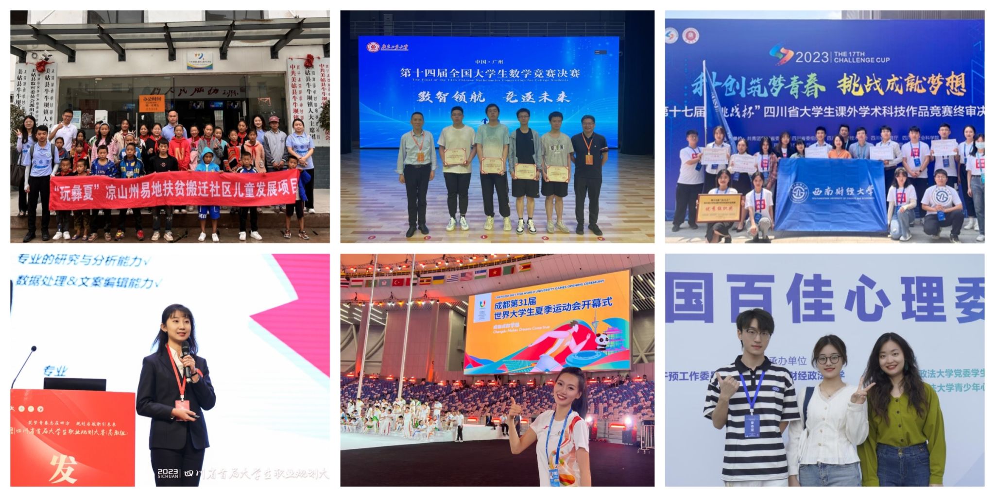 持续深化拓展“大学工”工作格局,启动实施“一站式”学生社区综合治理创新行动。建好“智慧就业平台”,促进高质量就业。不断完善“立体多维、联防联动”心理工作架构,建强“家校医社”联动模式。构建“理论+实践”劳动教育融通模式,深化打造“必赢‘勤’学堂”品牌。学校连续十年被评为“全国大学生暑期‘三下乡’社会实践优秀组织单位”,获全国首批“后勤服务育人劳动教育示范基地”“四川省五四红旗团委”“四川省心理学会先进集体”等荣誉,学生团队荣获“四川青年五四奖章”、中国青年志愿者优秀项目奖、全国大学生数学竞赛一等奖、“挑战杯”国家级二等奖、四川省职业规划大赛金奖、四川省大学生艺术节金奖等荣誉,学子获四川省“大学生年度人物”“全国百佳心理委员”等荣誉。校友获“全国高校毕业生基层就业卓越奖”。