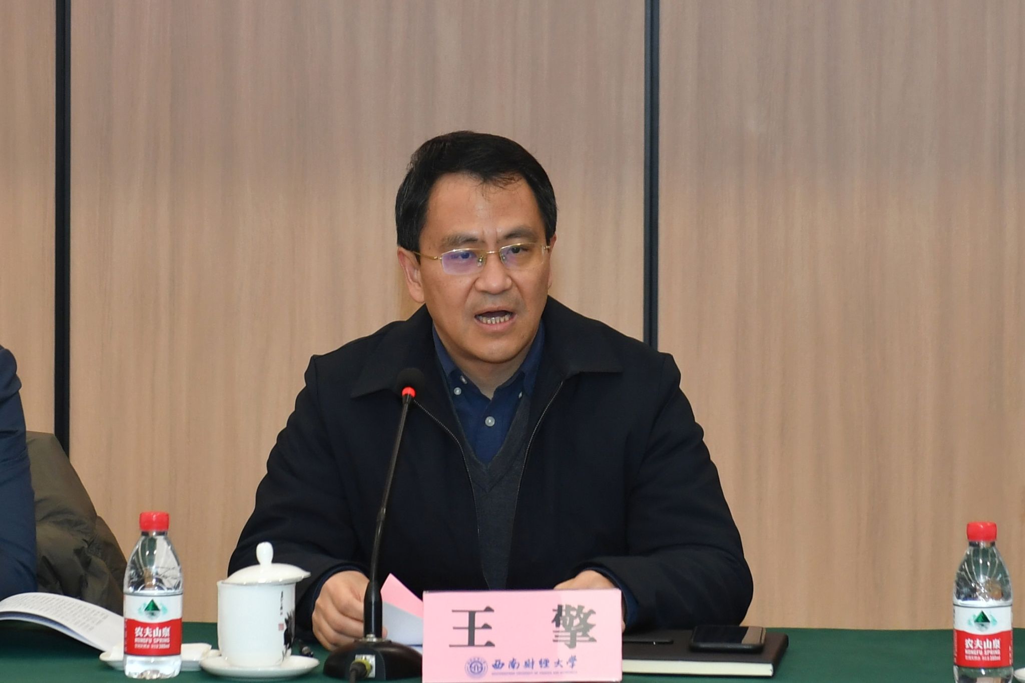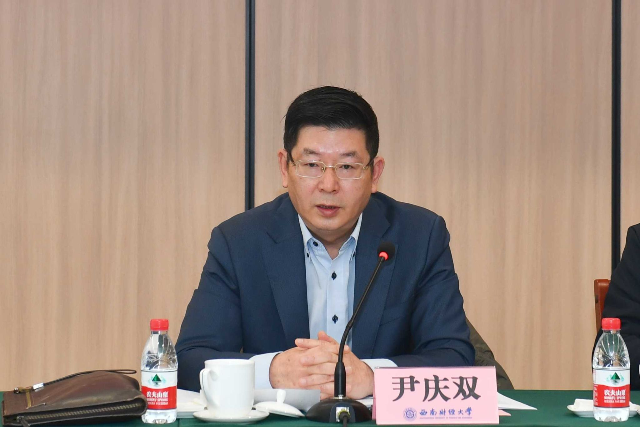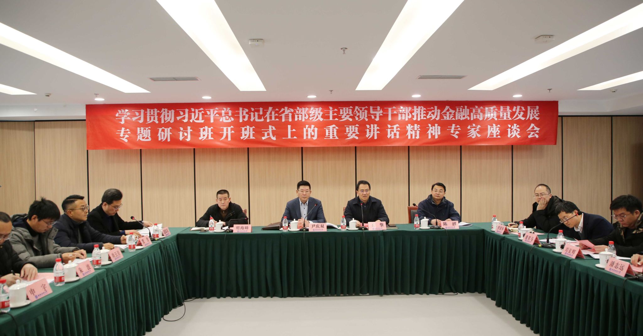 3月4日,学校学习贯彻习近平总书记在省部级主要领导干部推动金融高质量发展专题研讨会开班式上的重要讲话精神专家学者座谈会在诚正楼323会议室召开,党委常委、副校长尹庆双出席会议并讲话,党委常委、副校长王擎主持会议。会议由党委宣传部,科研处,习近平经济思想研究院,金融学院、中国金融研究院联合主办,各相关单位负责人、习近平经济思想研究院入驻团队负责人及专家学者参加座谈会。