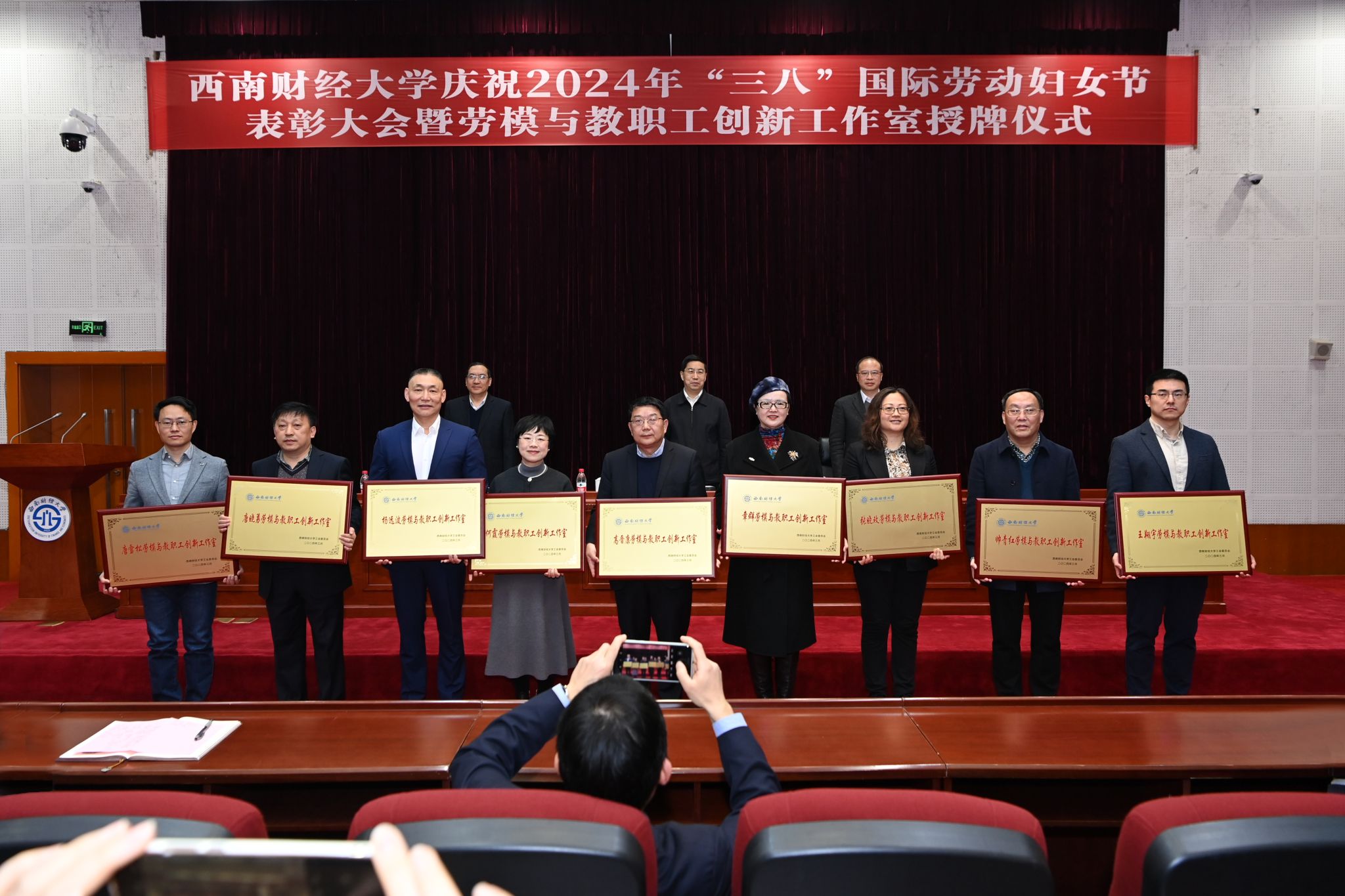 会上,史代敏宣读表彰决定和首批“劳模与教职工创新工作室”名单。学校领导为受到表彰的个人颁发证书,送上节日的鲜花,并为以全国“五一”劳动奖章获得者高晋康教授和全国“三八”红旗手章群教授为代表的9个“劳模与教职工创新工作室”授牌。