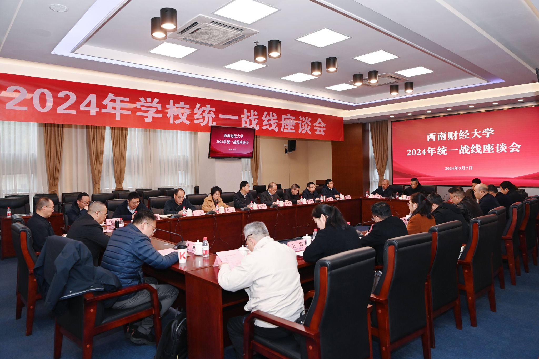 李永强系统回顾了2023年学校发展取得的显著成效,向为学校发展付出辛勤劳动的统一战线成员表示诚挚祝福和衷心感谢。他强调,要紧紧围绕服务教育强国、金融强国建设做好学校2024年各项工作,在建设世界一流大学和优势学科、培养拔尖创新人才、开展有组织科研、建设一流财经人才高地、扩大高水平开放合作、深入促进数字赋能等方面努力开创高质量发展新局面。希望广大统一战线成员坚持围绕中心、服务大局,充分发挥统一战线凝聚人心、汇聚力量的强大法宝作用,积极为学校发展建言献策,共同开创必赢更加美好的明天。