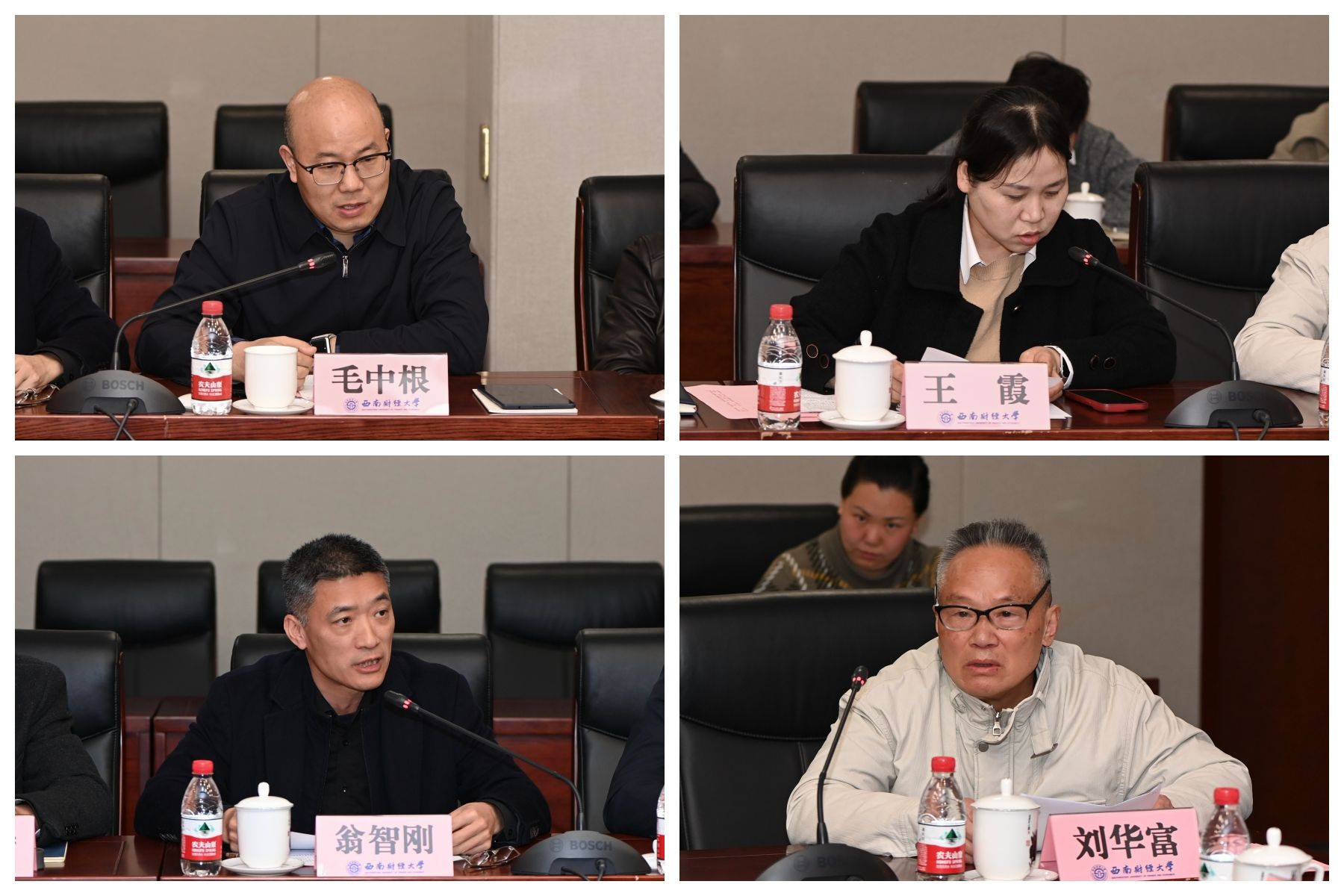 党委统战部常务副部长王石通报了学校2023年统战工作情况和2024年主要工作思路。保卫处处长刘枭、工商管理学院党委书记郑茂分别围绕学校统一战线工作领导小组成员单位落实统战工作责任的典型经验、院级党组织创新开展基层统战工作的特色做法进行交流。