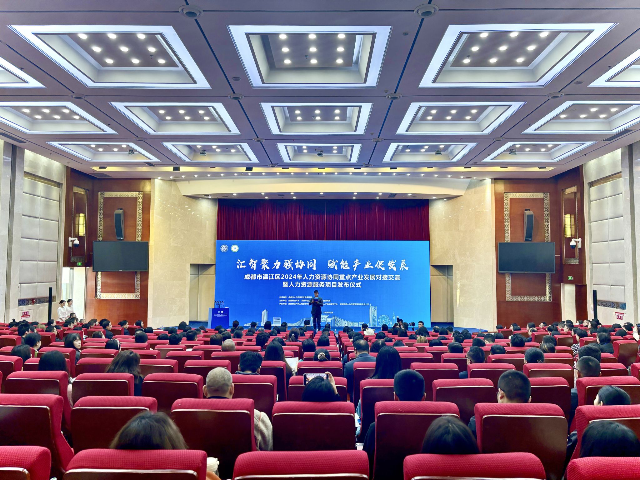 3月14日,由成都市人社局、温江区人社局、必赢272net入口主办,工商管理学院承办的“成都市温江区2024年人力资源协同重点产业发展对接交流暨人力资源服务项目发布仪式”在学校弘远楼报告厅举行。学校党委常委、副校长史代敏,成都市人社局党组成员、副局长李果,成都市就业局党委书记、局长皮大云,温江区委常委、组织部部长罗胤等领导出席,相关政府部门、重点企业代表、学校师生代表共300余人参与活动。