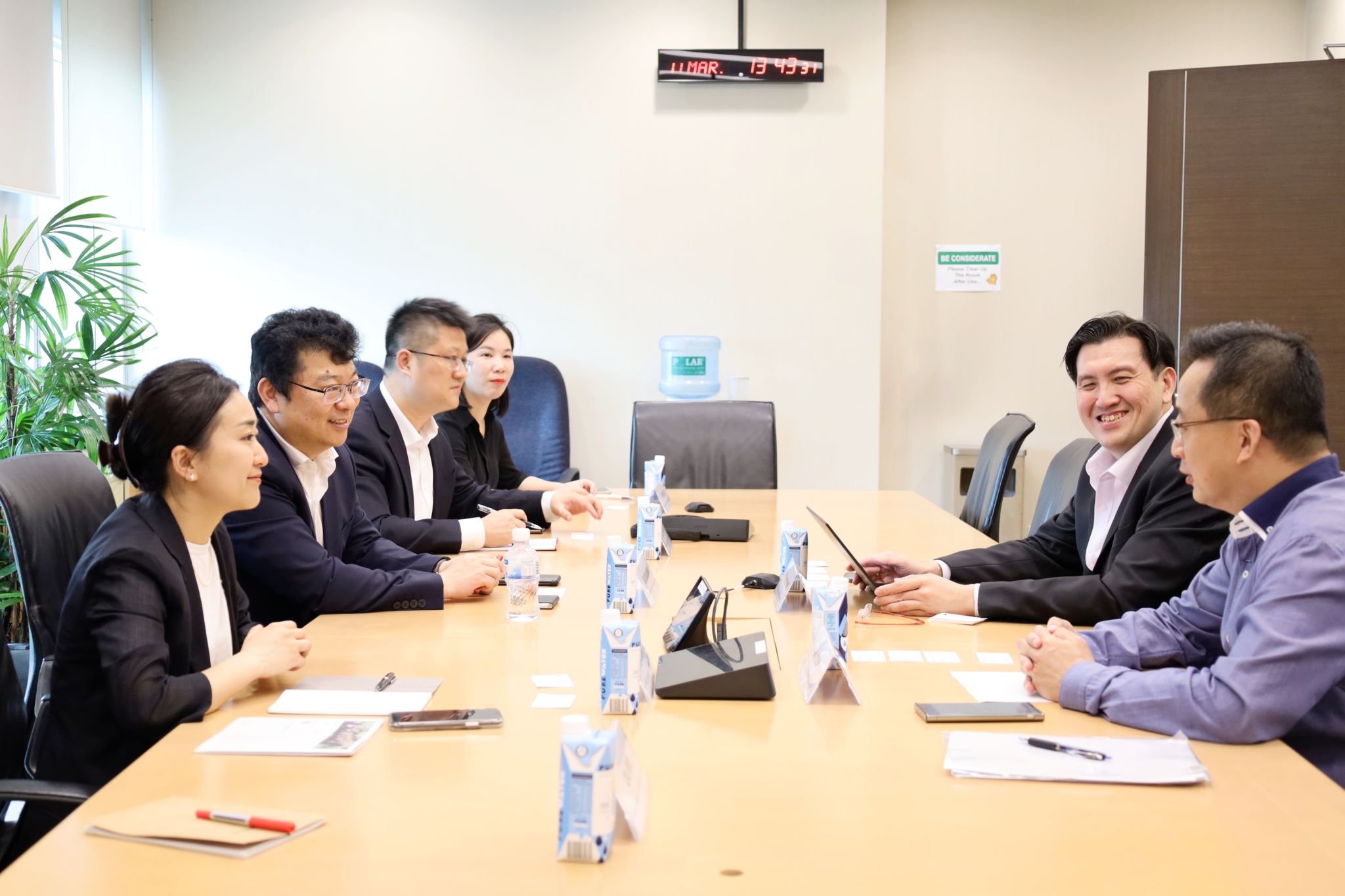 孙殿明一行与新加坡国立大学副校长(副教务长)Chai Kah Hin、海事研究中心主任Chew Ek Peng等举行会谈。孙殿明介绍了学校近百年发展历史、“双一流”建设成效以及深度开放战略,就加强海洋科研和发展“蓝色经济”与对方展开深入讨论,期待两校通过探索人才培养和科学研究合作新模式服务新质生产力发展。Chai Kah Hin对代表团表示热烈欢迎,对双方的合作基础表示肯定,期待未来加强师生学术交流、拓展海事与经济管理交叉学科深度合作。