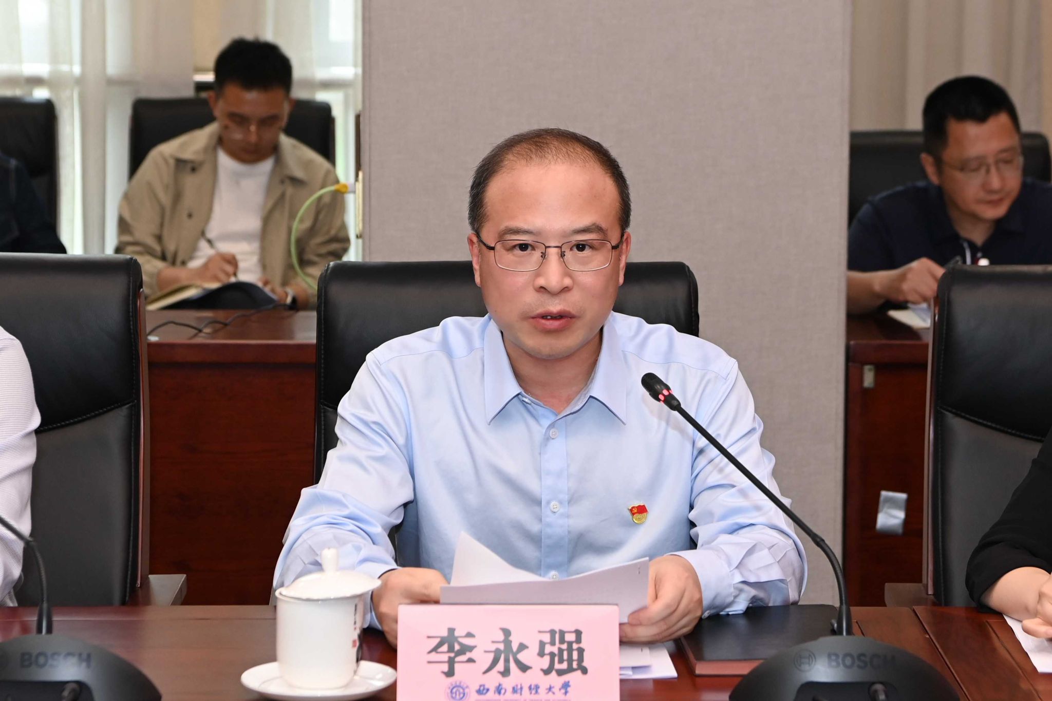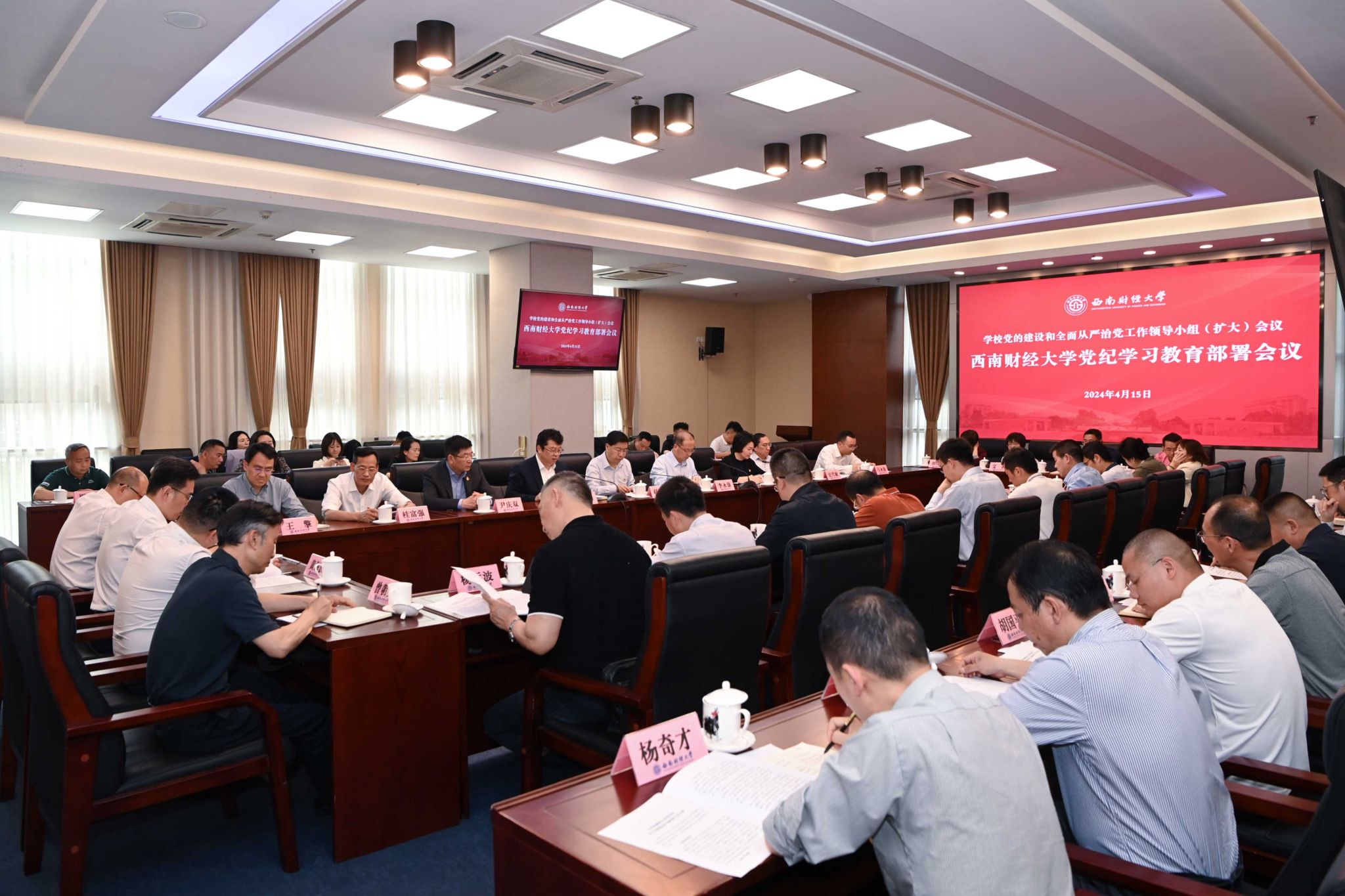 4月15日,学校召开党的建设和全面从严治党工作领导小组(扩大)会议。党委书记赵建军,党委副书记、校长李永强,党委副书记、纪委书记孙殿明,党委副书记谢红,党委常委、副校长尹庆双、史代敏、桂富强、马永强、王擎,党委委员、纪委委员,学校党的建设和全面从严治党工作领导小组成员单位主要负责人、各院级党组织书记参加会议。李永强主持会议。
