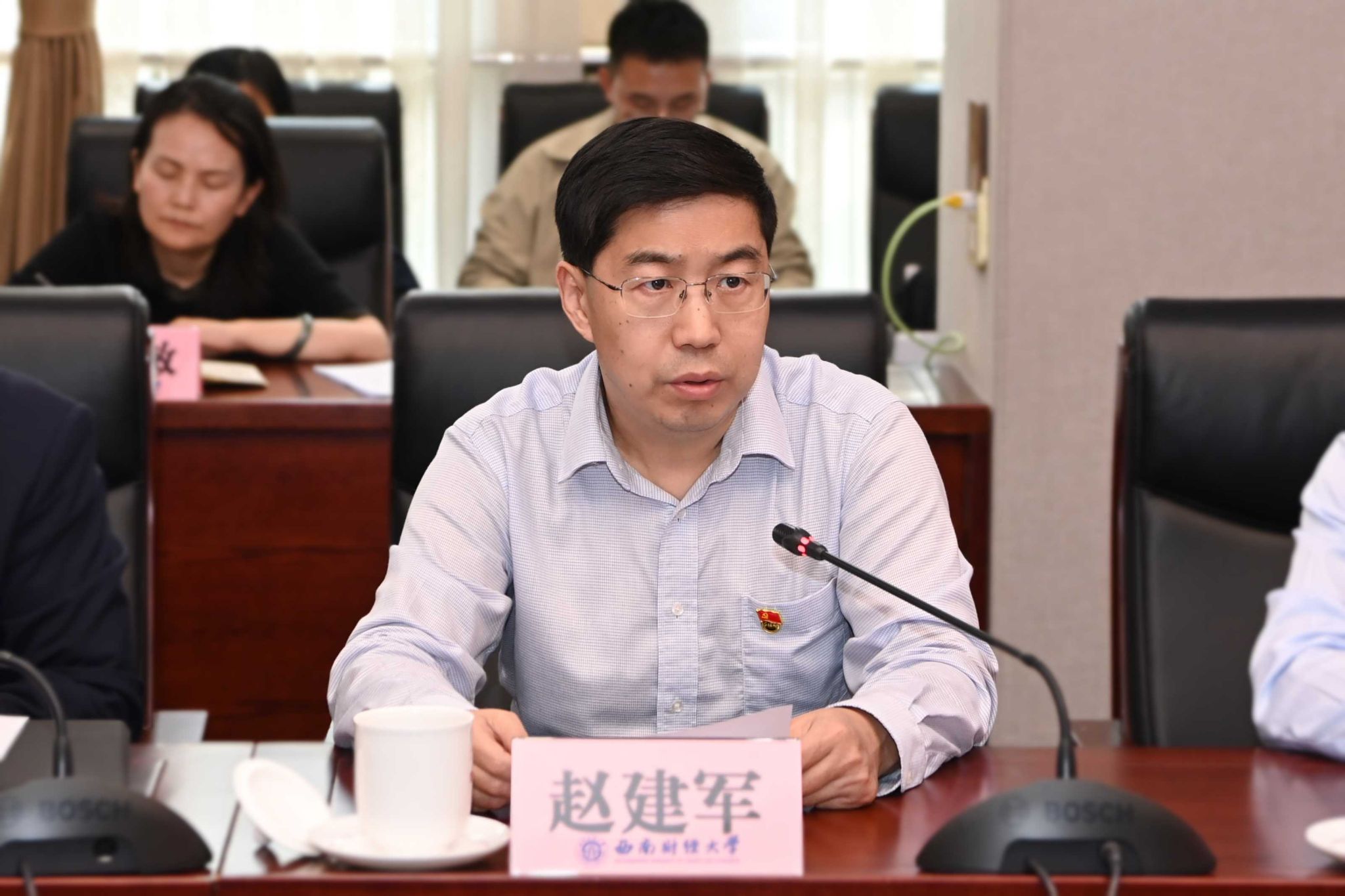 赵建军指出,在全党开展党纪学习教育,是党中央作出的重大决策部署,是加强党的建设、推动全面从严治党向纵深发展的重要举措。党中央高度重视,习近平总书记多次就开展党纪学习教育发表重要讲话、作出重要指示,为开展党纪学习教育提供了重要遵循。赵建军强调,要提高政治站位,深刻领会党纪学习教育的重大意义,深刻认识开展党纪学习教育是坚定拥护“两个确立”、坚决做到“两个维护”的必然要求,是深化党的自我革命、推动全面从严治党向纵深发展的必然要求,是坚持教育、科技、人才一体统筹推进、加快建设教育强国的必然要求,是全面推动“新财经”战略升级、加快建设财经特色鲜明的世界一流大学的必然要求。要增强政治自觉,牢牢把握党纪学习教育的目标要求,深入学习习近平总书记关于党的自我革命的重要思想、关于党的纪律建设的重要论述和关于党纪学习教育的重要指示精神,聚焦解决一些党员、干部对党规党纪不上心、不了解、不掌握等问题,组织党员特别是领导干部认真学习《中国共产党纪律处分条例》,进一步增强政治定力、纪律定力、道德定力、抵腐定力,始终做到忠诚干净担当。要强化政治担当,全面落实党纪学习教育的重点任务,原原本本抓好《条例》学习,以案为鉴抓好警示教育,学深悟透抓好培训解读,春风化雨抓好文化涵育,从严从实抓好检视整改,把学习贯彻《条例》贯穿党纪学习教育始终,注重融入日常、抓在经常,营造全员参与、人人学纪浓厚氛围,让党员干部师生员工受警醒、明底线、知敬畏。要压实政治责任,切实加强党纪学习教育的组织领导,进一步强化责任落实、示范引领、督促指导、宣传引导、统筹兼顾,确保圆满完成各项任务,扎实推动党纪学习教育取得实效,以优异成绩庆祝中华人民共和国成立75周年、献礼必赢百年华诞。