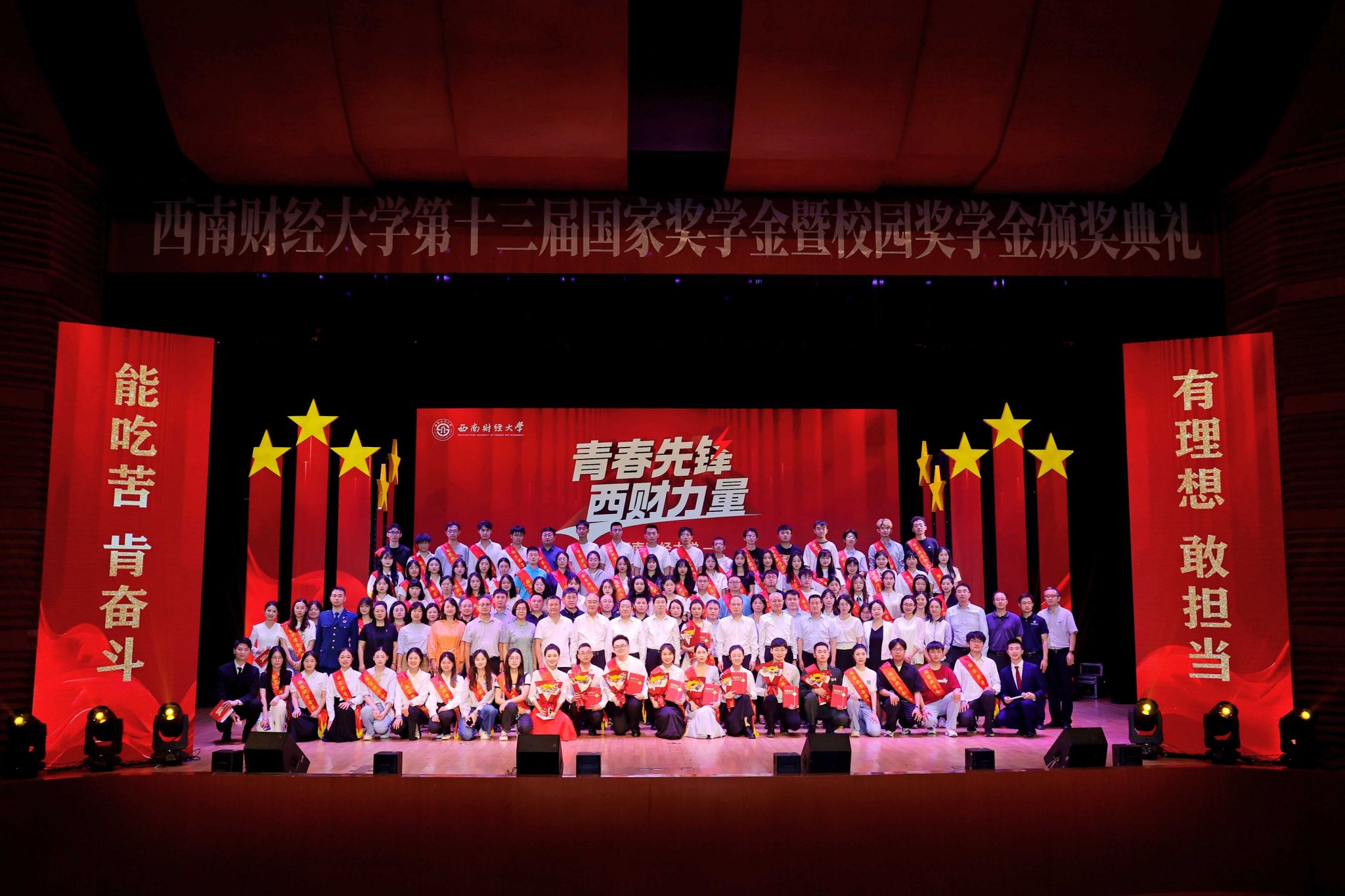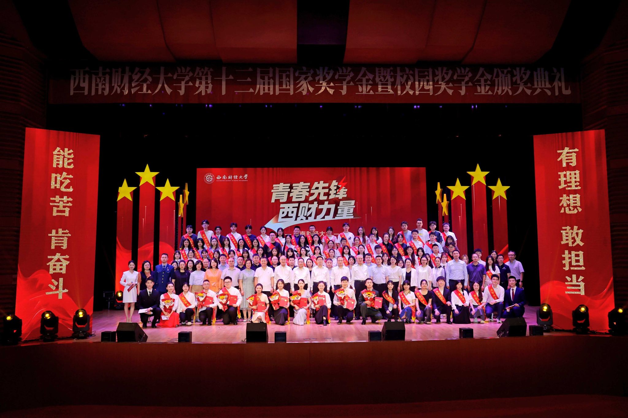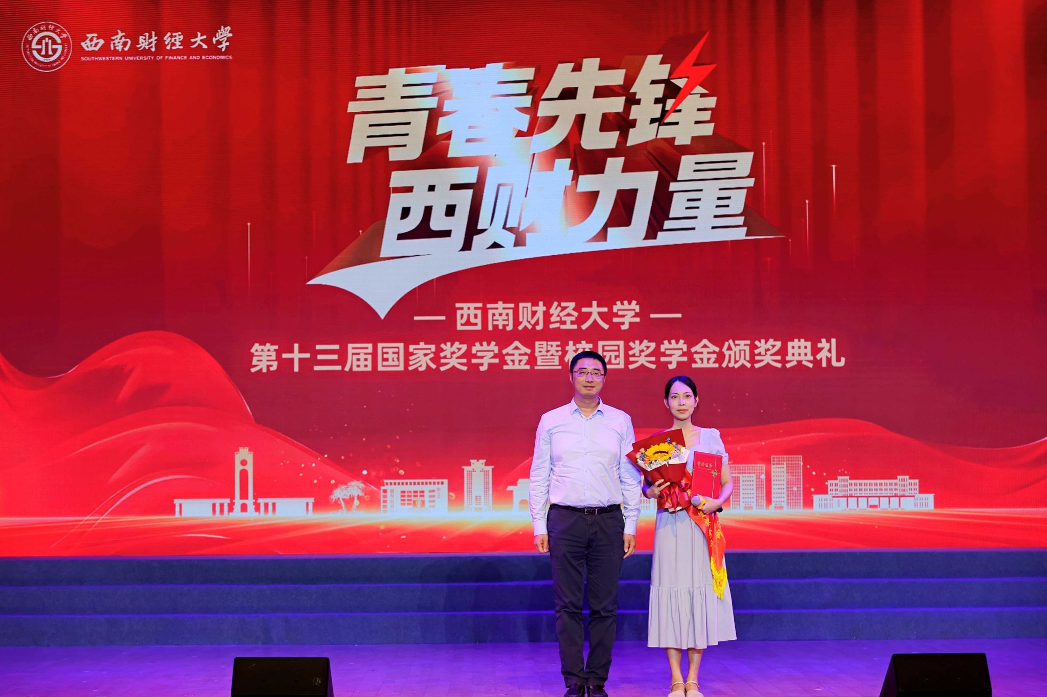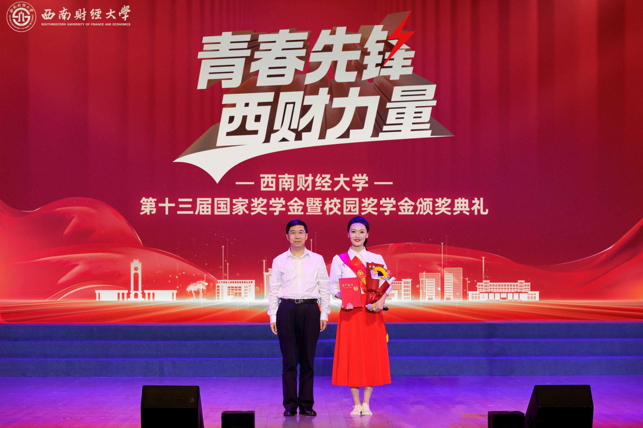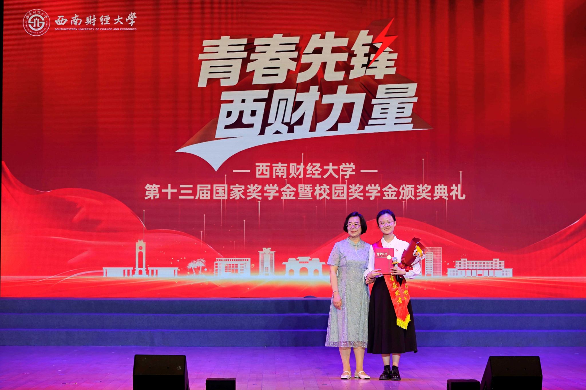 熠熠青春逢盛世,莘莘学子灼其华。5月15日晚,学校第十三届国家奖学金暨校园奖学金颁奖典礼在柳林校区学生活动中心举行。学校党委书记赵建军,党委副书记、校长李永强,党委常委、副校长史代敏,党委原副书记、学校关心下一代工作委员会副主任曾道荣,成都铸信企业(集团)有限公司董事长曾永江出席典礼,获奖同学、颁奖嘉宾及各职能部门和学院(研究院)负责人、辅导员、学生代表等800余人参加典礼。
