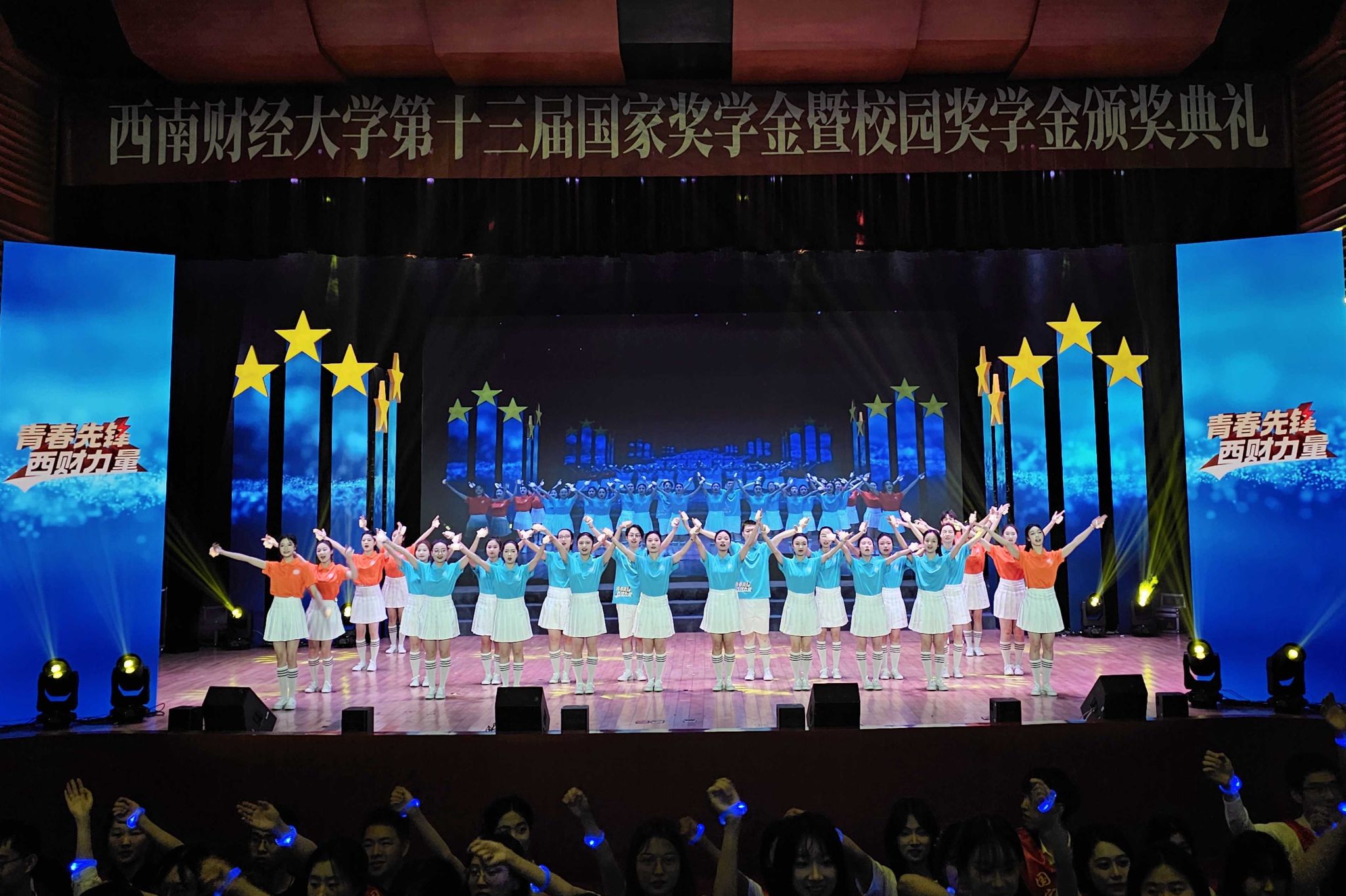 2022-2023学年学校开展评优评奖24项,涵盖国家奖学金、励志奖学金,优秀学业、道德风尚、社会实践、科研科创、文化素质、劳动素养等类别,奖励达30000人次,其中129名本科生、92名硕士研究生、23名博士研究生共244人获得国家奖学金。颁奖典礼在获奖学生倾情呈现的舞蹈《星辰大海》中拉开帷幕。