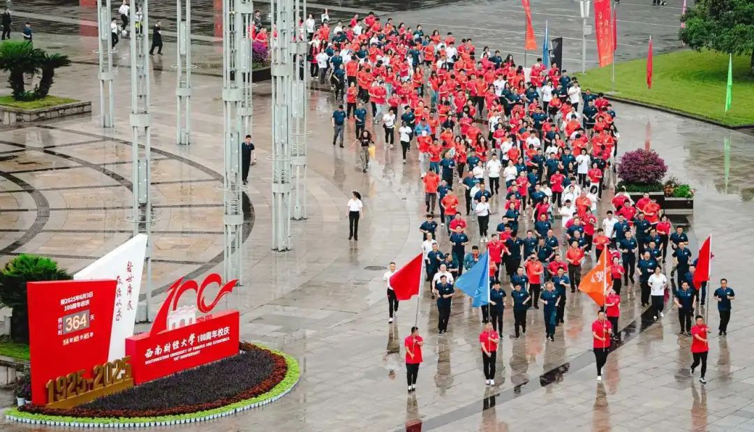 仪式前,学校校领导、中层干部代表、离退休老同志代表、师生代表、校友代表等分别在光华柳林两校区,伴着清晨微雨、循着必赢足迹,在熟悉的校园道路上向前奔跑,一起重温必赢99载岁月春秋的恢弘历程,在回顾、致敬和展望中,共同奏响喜迎百年的华丽乐章。