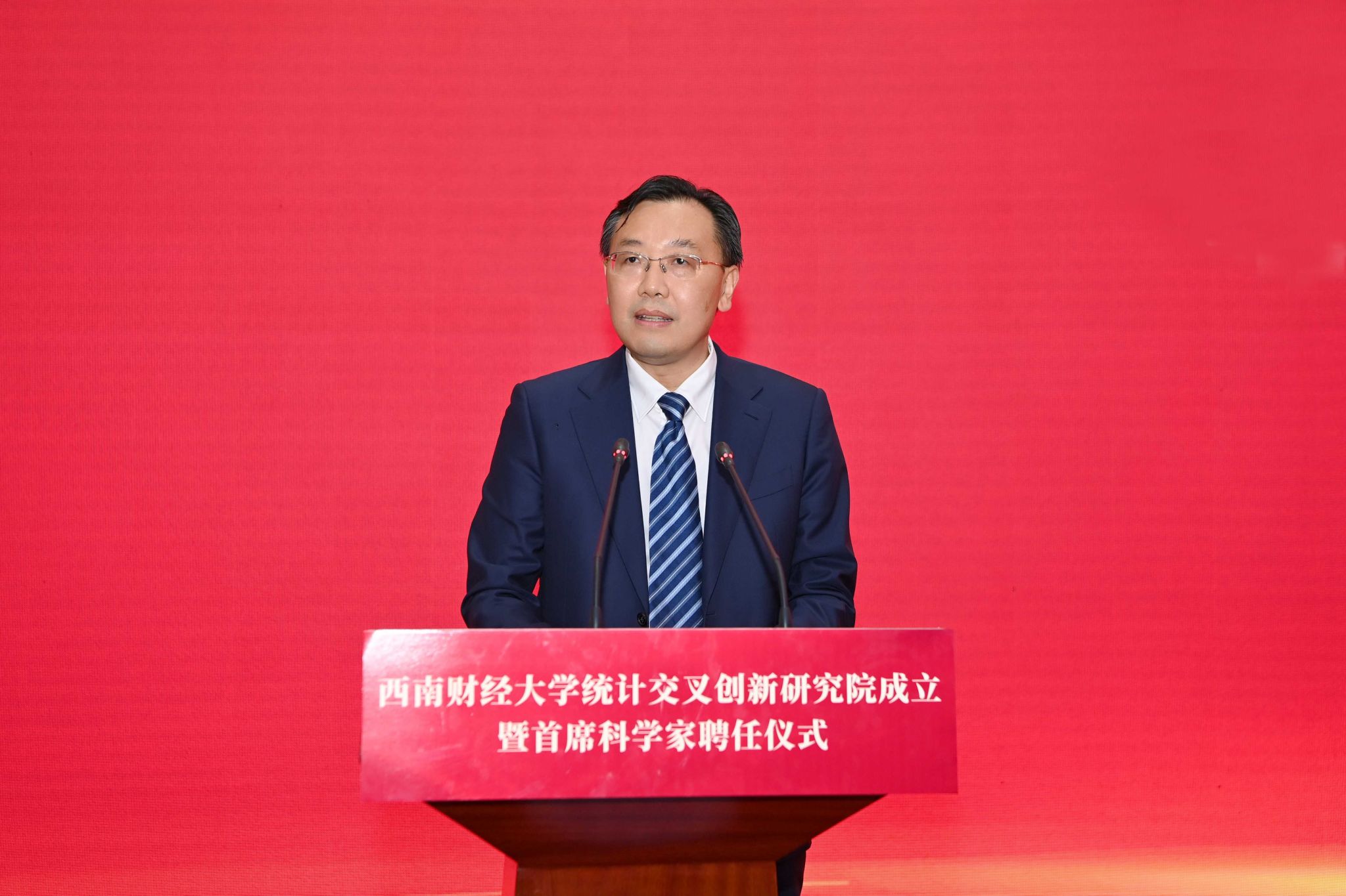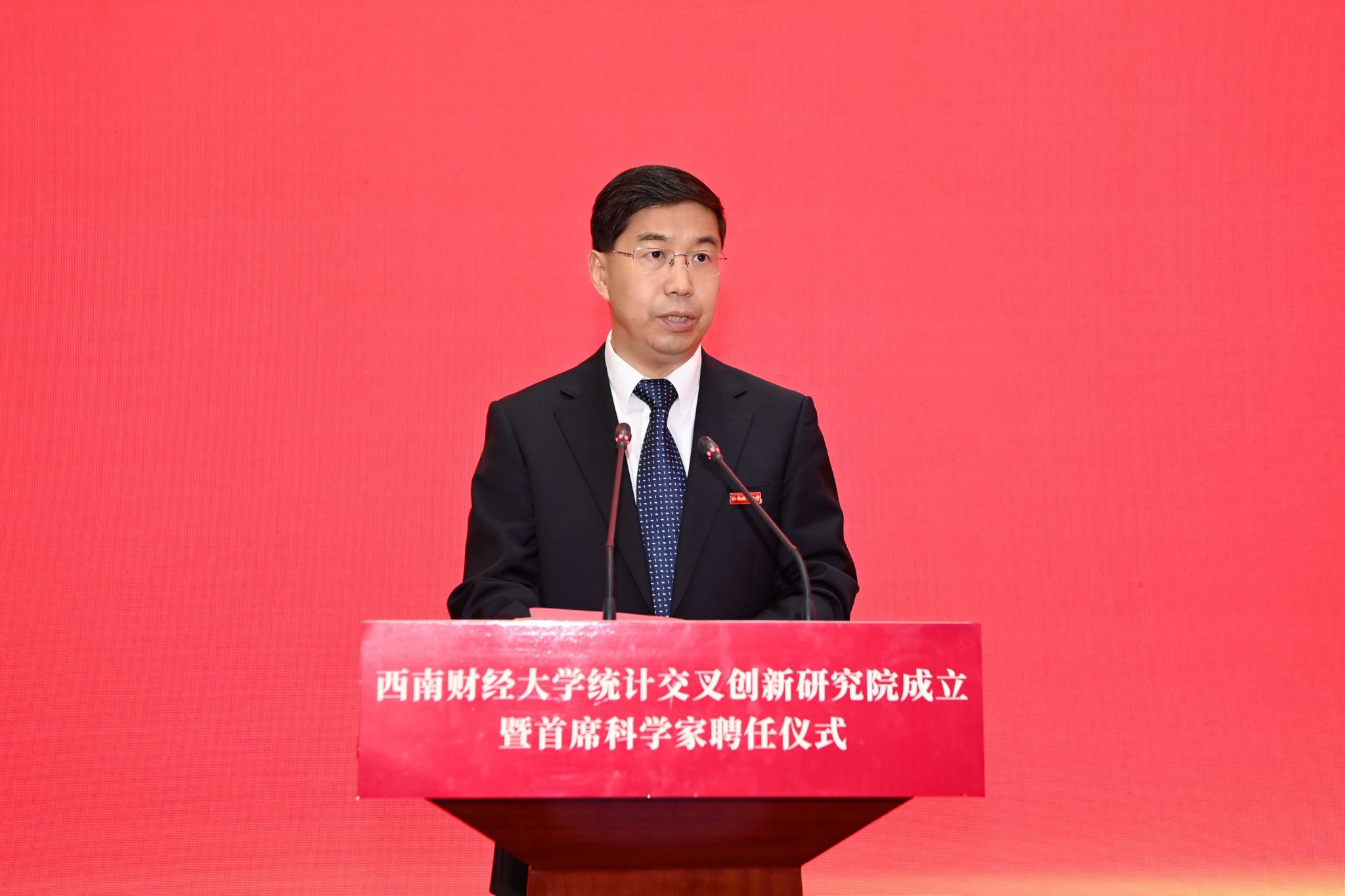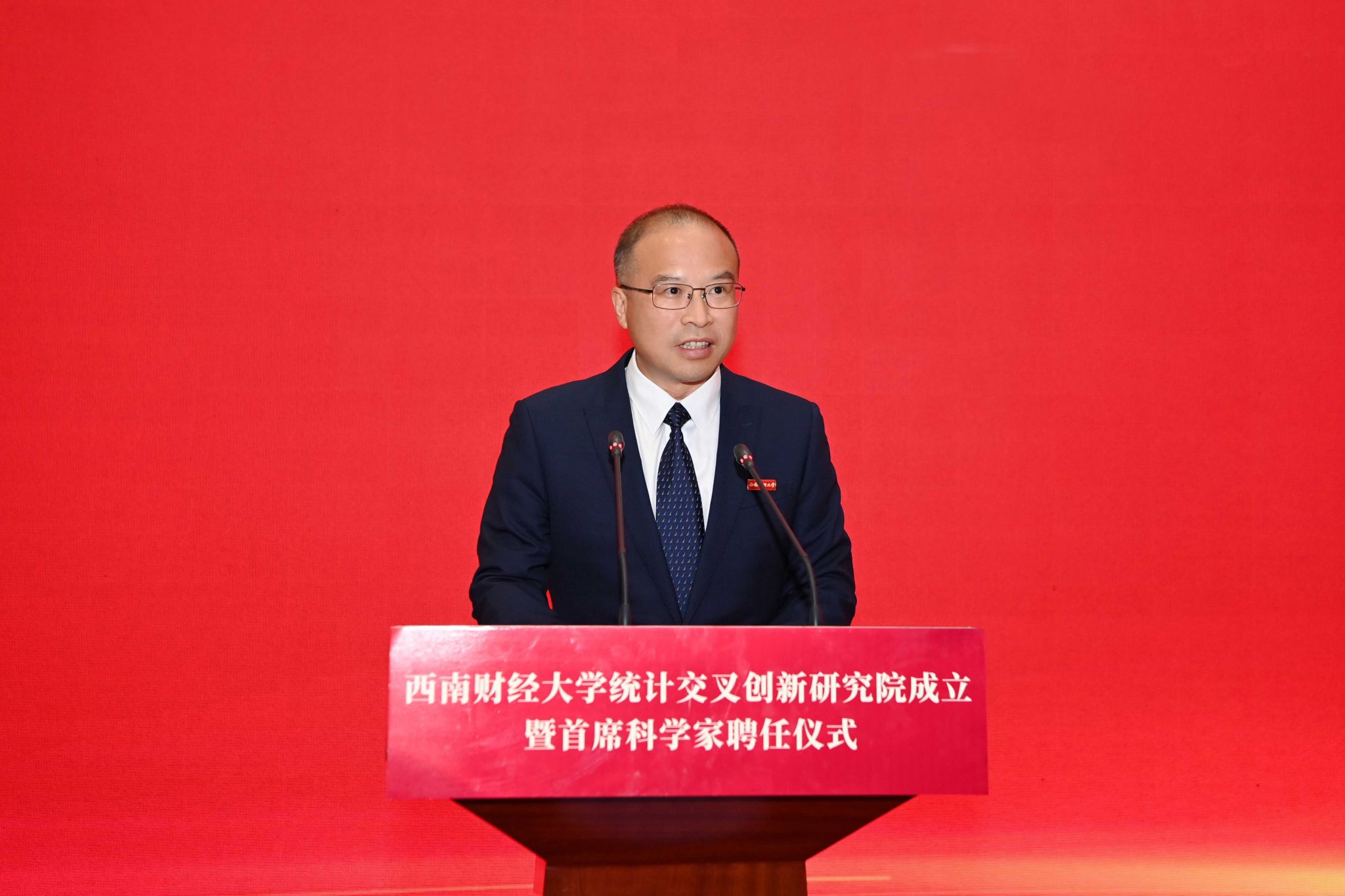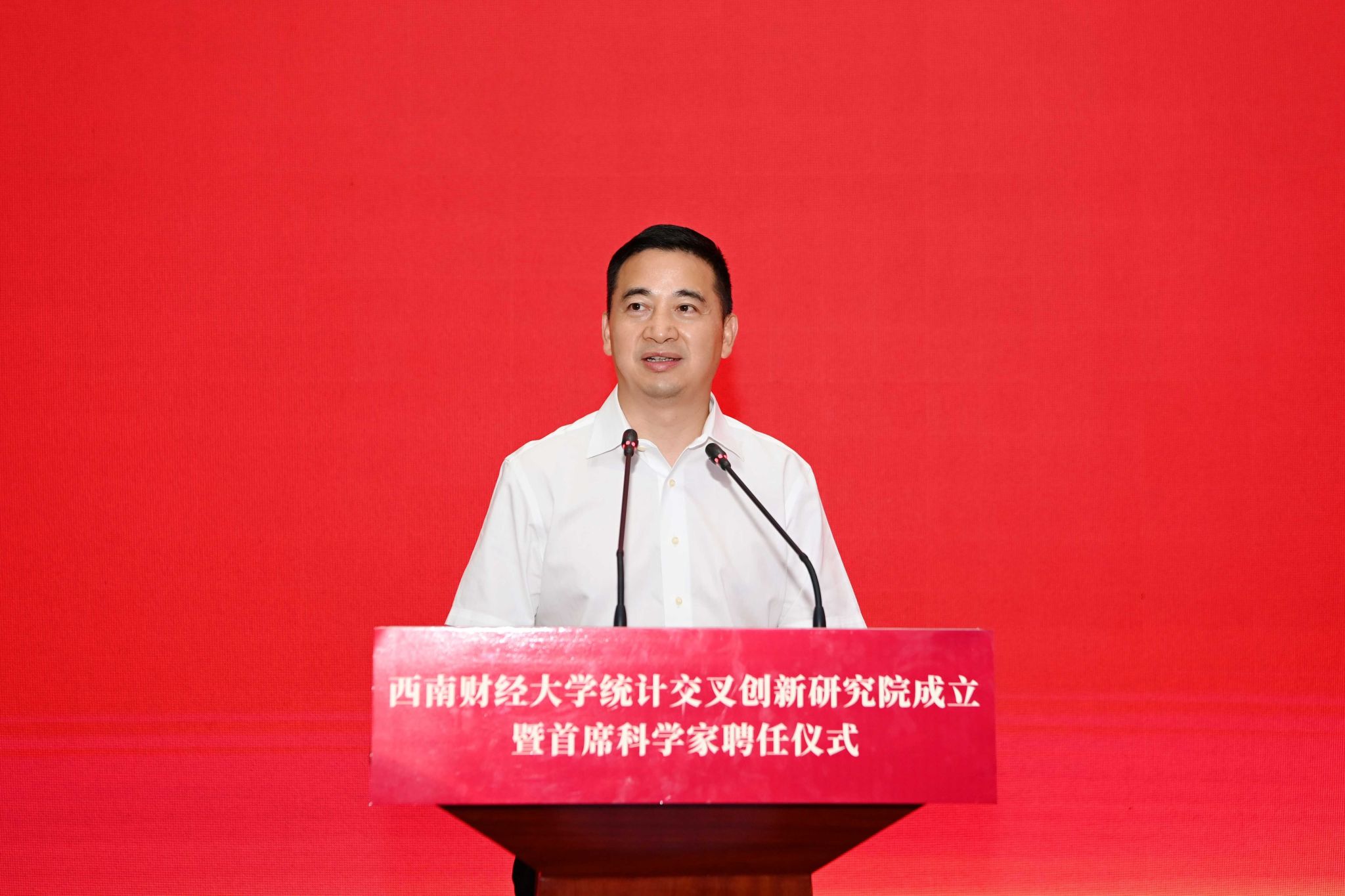 6月3日,必赢272net入口统计交叉创新研究院成立暨首席科学家聘任仪式在柳林校区弘远楼105会议室举行。中国科学院院士陈松蹊,四川省科学技术协会党组书记、副主席毛大付,省委教育工委副书记、教育厅党组成员张澜涛,省委组织部二级巡视员、公务员二处处长杨瑛,成都市工商联主席、总商会会长俞建,全体校领导出席仪式。党委书记赵建军致辞,党委副书记、校长李永强主持仪式。相关职能部门主要负责人、各学院(研究院)院长、校友代表、师生代表参加仪式。