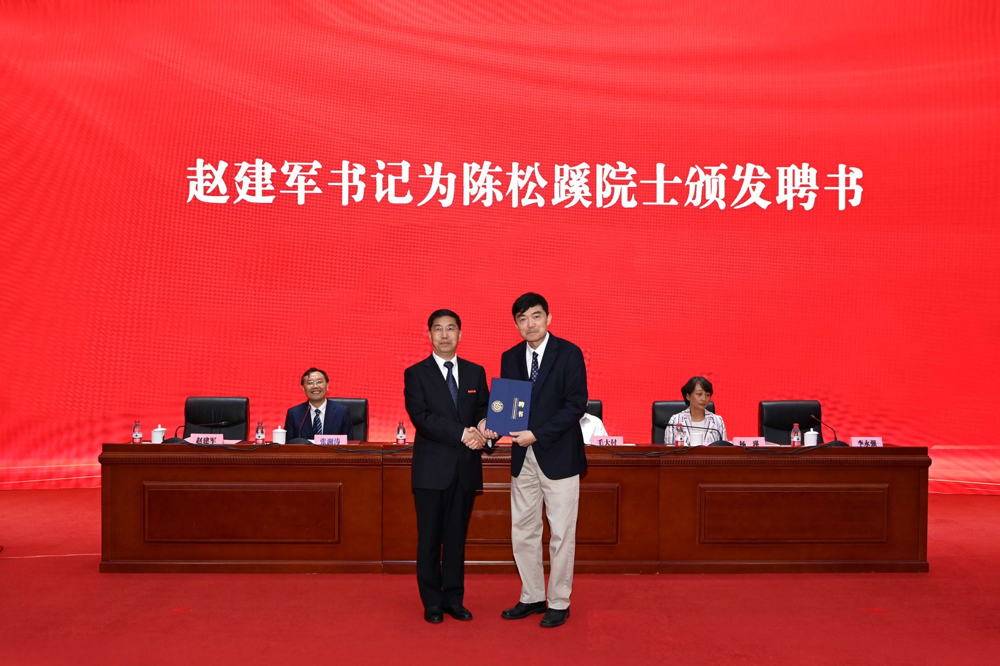 赵建军向陈松蹊院士致以崇高敬意,向统计交叉创新研究院成立表示热烈祝贺,向莅临活动的领导、嘉宾表示诚挚欢迎和衷心感谢。他指出,党的十八大以来,学校党委深入实施“人才强校”战略,以高层次人才为核心开展教育教学和有组织科研,全面推进学校事业高质量发展。组建统计交叉创新研究院并聘请陈松蹊院士为研究院首席科学家,是学校贯彻落实习近平总书记关于人才工作重要论述的又一重大行动,是贯彻落实四川省委关于加快建设创新人才集聚高地的具体实践,也是服务支撑高水平科技自立自强的全新战略布局。赵建军强调,高标准高起点建设统计交叉创新研究院,要聚焦“国之大者”产出大成果,根据国家所需,紧扣重点领域、重要产业,开展体系化科研攻关,攻克“卡脖子”关键核心问题,推动高质量发展。要聚焦“人才梯队”组建大团队,深入推进有组织科研,积极引进高层次人才,建设一支年龄结构合理、攻坚本领过硬、满足学科战略发展需要的人才梯队。要聚焦“立德树人”培育大先生,强化政治引领和思想引领,积极探索党建引领有组织科研长效机制,自觉做习近平新时代中国特色社会主义思想的坚定信仰者、忠实践行者和积极传播者。