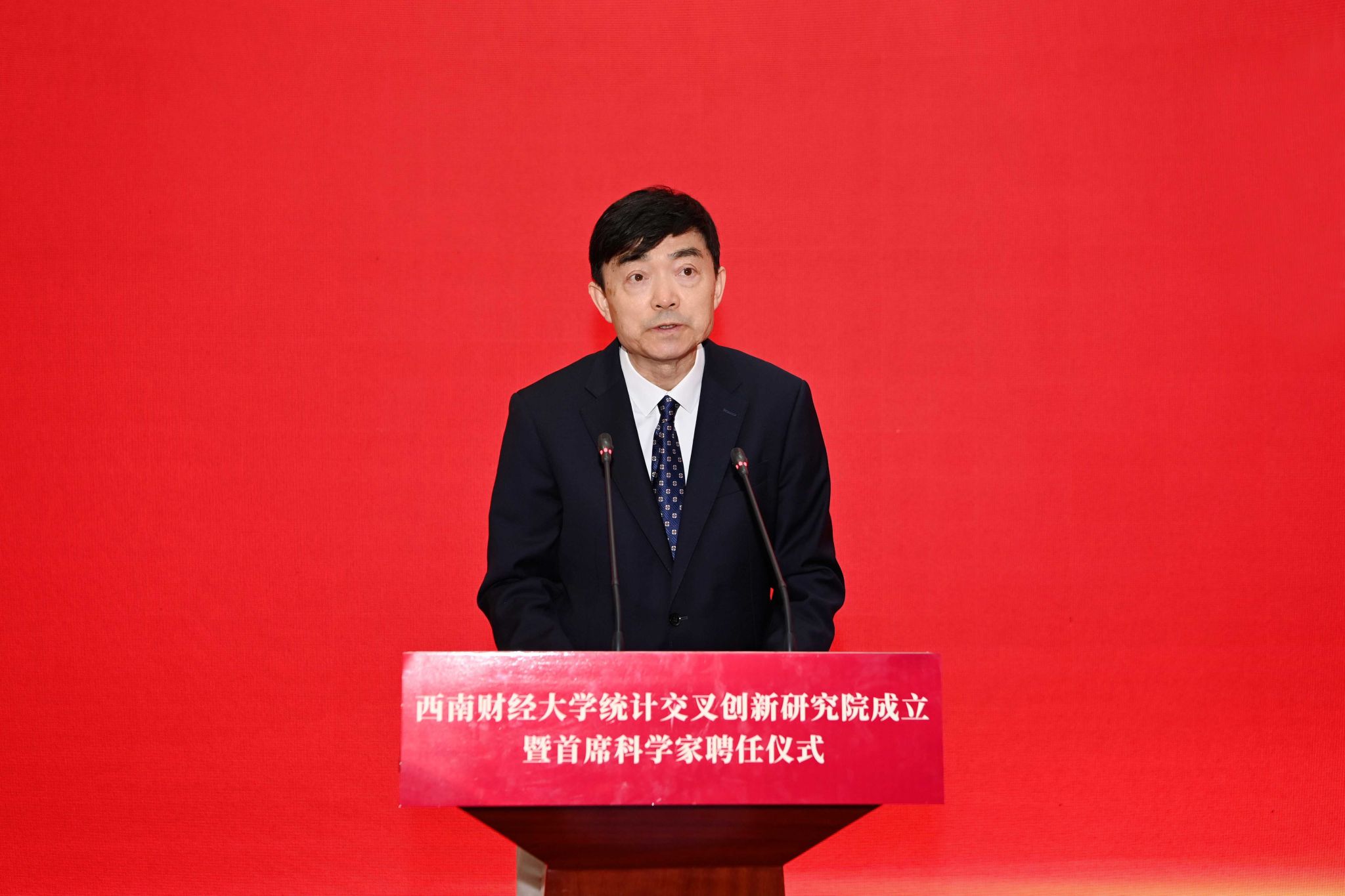毛大付致辞指出,省委十二届五次全会对四川发展新质生产力,推进高质量发展作出整体谋划,形成系列推动高质量发展政策体系和体制机制,为四川以科技创新牵引发展新质生产力注入新的强大动力。成立统计交叉创新研究院、聘请陈松蹊院士为研究院首席科学家是学校落实新质生产力重要部署的创新举措,希望以此为契机,进一步加快统计学科发展、增强发展新质生产力创新源头供给,为以数字赋能四川高质量发展提供更加坚实的科技支撑和人才支撑。省科协将坚定履行服务职责,一如既往为在川人才、在川高校做好支持保障工作。