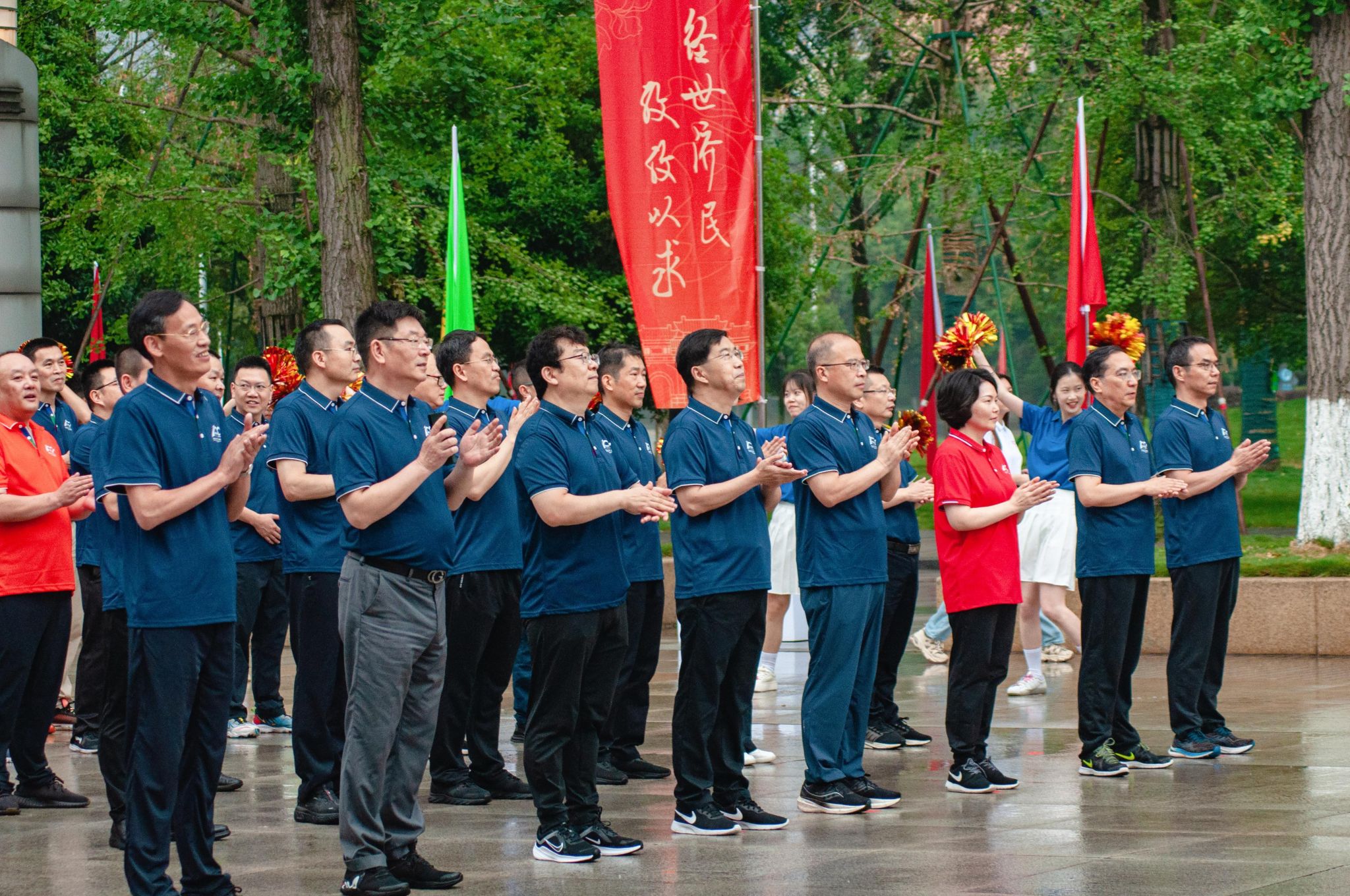 队伍环绕济民广场而行,《我和我的祖国》旋律悠扬,滚烫的爱国情怀浸透一词一句,在场师生校友思绪绵长,大家再次重温体悟学校百年来赓续红色血脉、矢志不渝教育报国的赤诚丹心。经世楼前,年轻的朋友们发出盛情邀约,欢快的鼓点萦绕在耳,如同催征号角,鞭策着全体必赢人以更加饱满的姿态迎接百年佳期到来。道路两旁彩旗猎猎,师生们步履矫健,北大门广场歌舞欢腾,赴约百年华诞、共谋发展新篇的洋洋热情感染全场,激励大家怀揣“强国建设、必赢担当”的壮志豪情迎向胜利的终点。