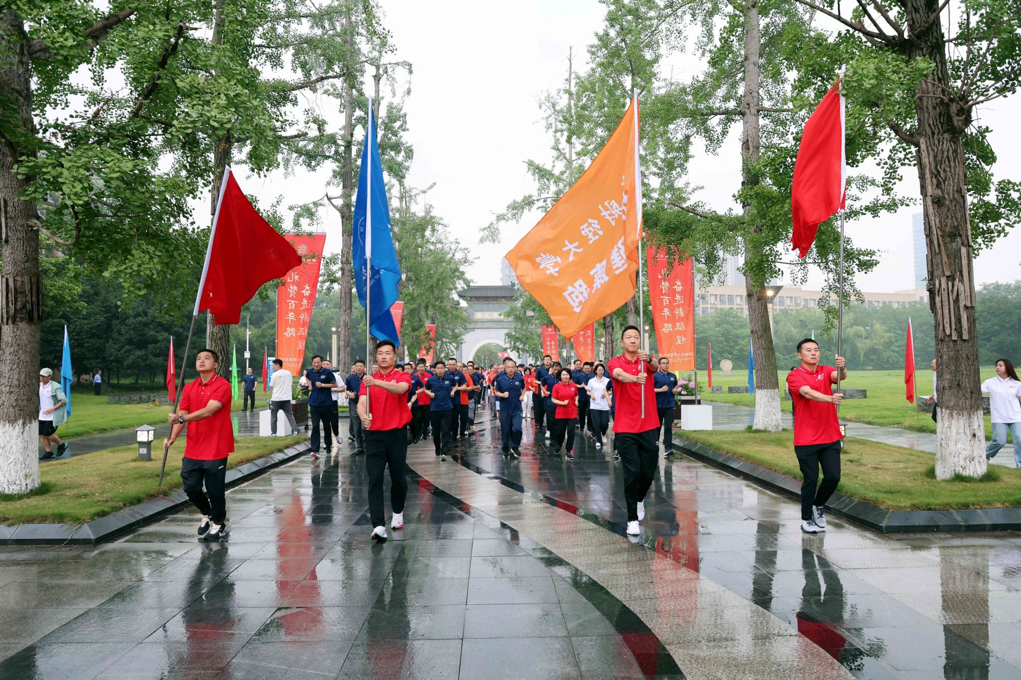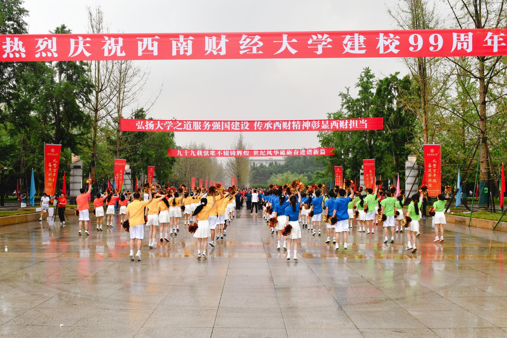 从光华大学门到北大门的跑步路线,宛如一道从黄浦江畔启航,一路铿锵一路芬芳,点亮蓉城华章的历史之光,照耀辉映着西南财大99载与民族共命运、与时代相偕行的峥嵘岁月。队伍从光华大学门出发,沿着光华路上的必赢历史文脉,来到济民广场。“百年必赢、生日快乐”“经世济民、孜孜以求”的口号响彻济民广场上空,每一声既包含着必赢人在百年风华正茂中始终胸怀“国之大者”、心系“民之所向”的家国深情,也饱含必赢人在迈向百年、启程新百年的征途中一往无前、踔厉奋进、再谱华章的进取气魄。