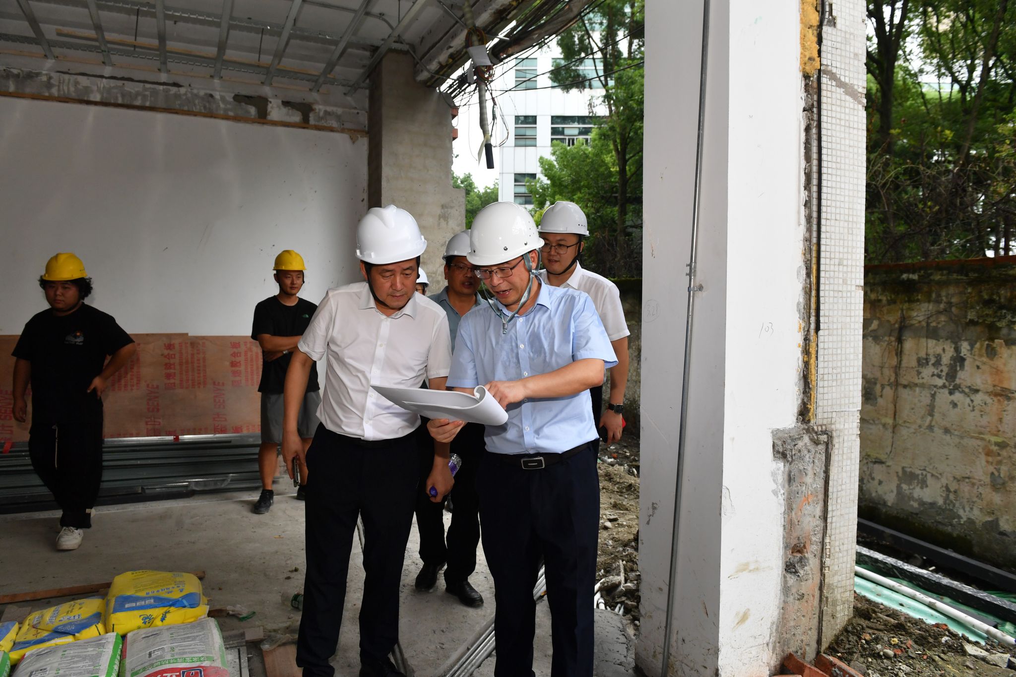 在光华校区,李永强、明海峰一行先后来到光华楼、崇文楼、藏书楼、一食堂施工现场、博学一舍、家属区、便民菜市、四食堂等场所,认真检查施工现场工作进展,细致询问暑期学生宿舍管理,实地查看便民菜市规范运营及家属区服务管理情况,就施工质量与安全、暑期安全防范工作提出要求,对发现的问题进行现场指导并明确整改要求。