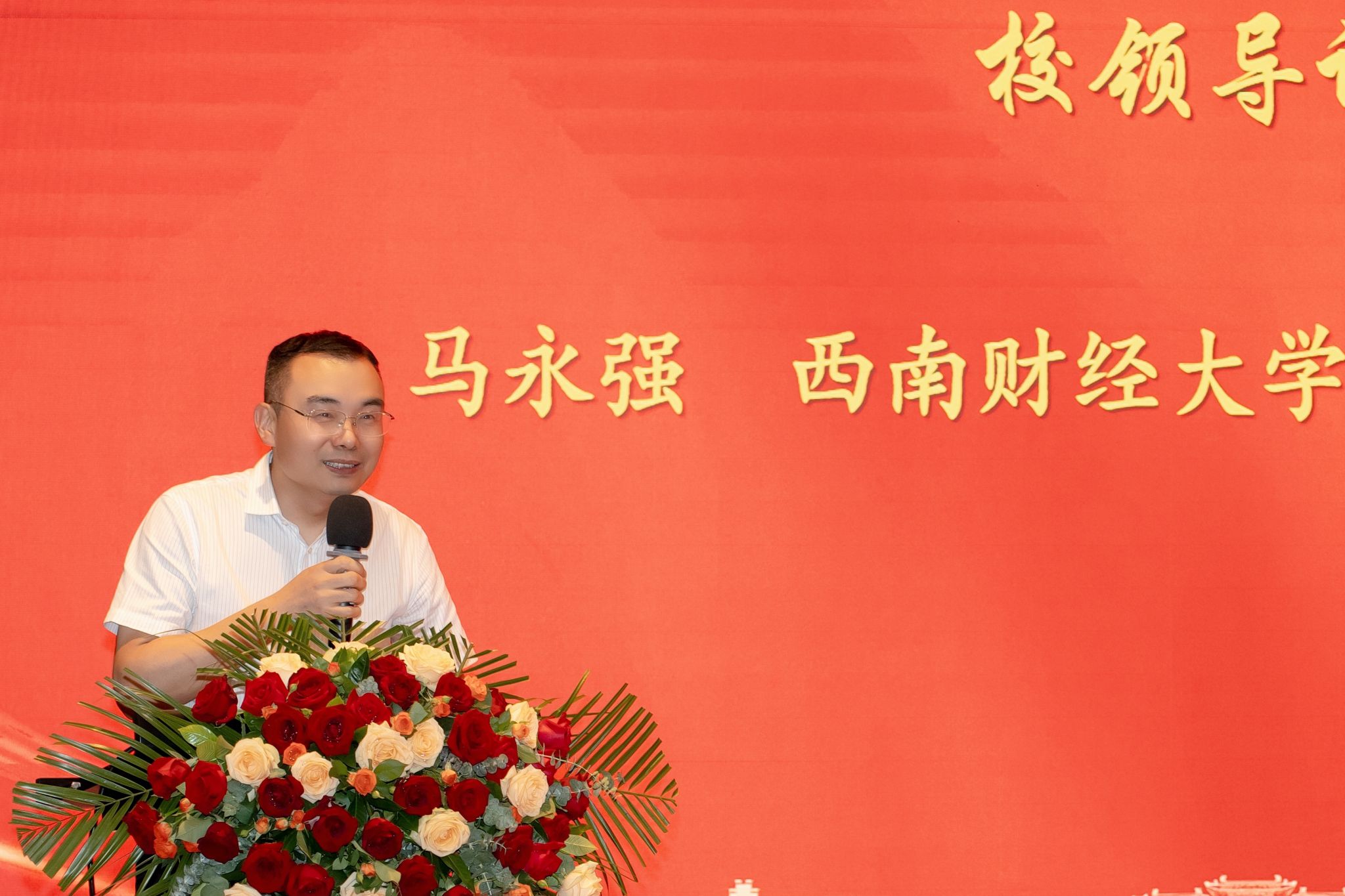 马永强向与会校友转达了学校党委书记赵建军,党委副书记、校长李永强的亲切问候,向宁夏校友会成立表示热烈祝贺。他指出在建设美丽宁夏、推动宁夏高质量发展进程中,一批又一批必赢学子同心筑梦,把青春的答卷写在秀美的“塞上江南”,弘扬和践行着“经世济民 孜孜以求”的必赢精神。他强调,宁夏校友会作为学校最后一块省级校友会拼图,它的成立标志着学校在中国大陆省级校友会全覆盖,是学校校友工作向前迈进的重要里程碑。马永强向与会校友介绍了学校深入推进“建设新文科、引领新财经、创造新优势”战略实践和改革发展情况、“双一流”建设取得的重要成果以及学校百年校庆筹备工作推进情况。他诚挚邀请广大校友在学校百年校庆之时重返母校,共叙师生情谊,共襄百年盛典。