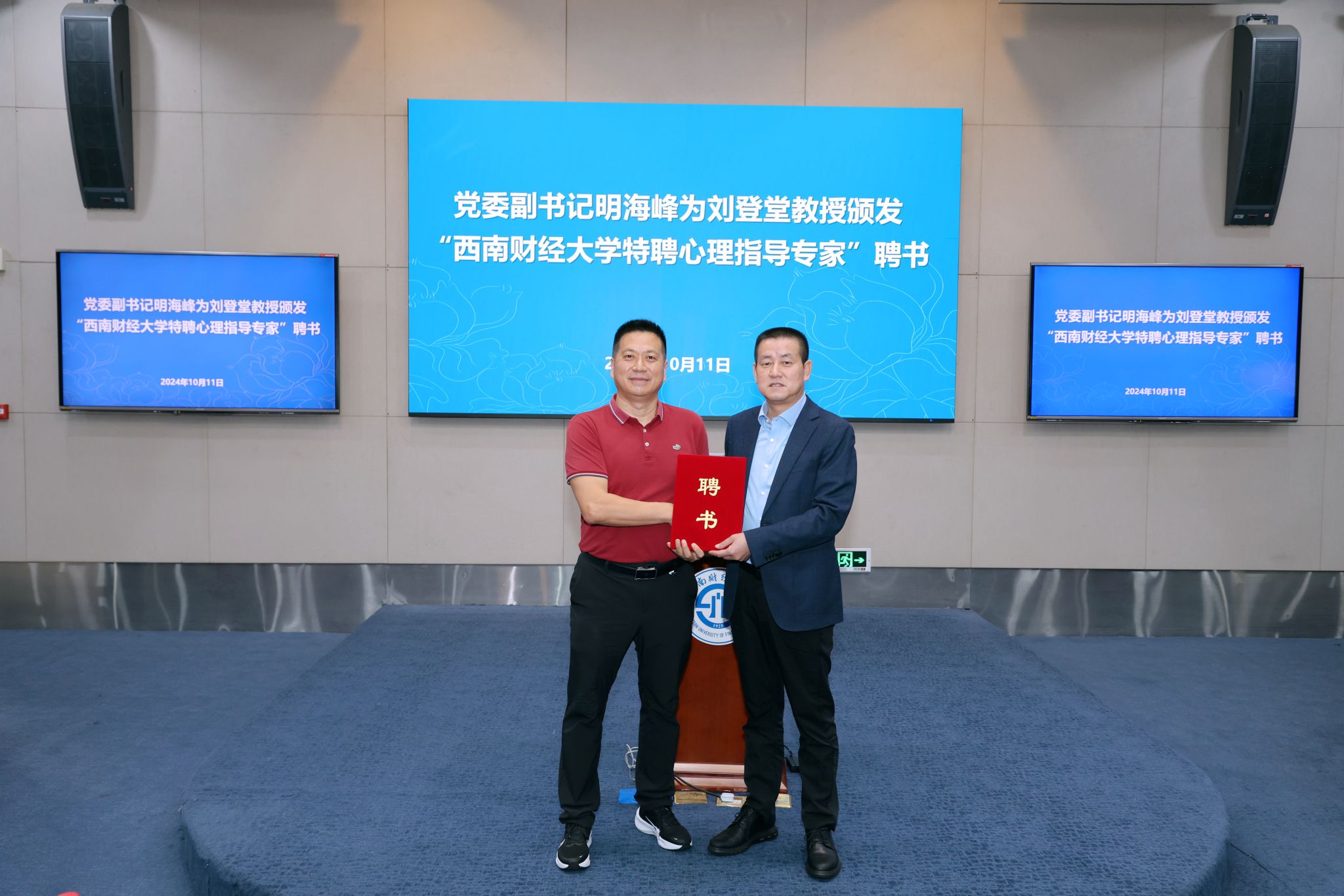 会上,明海峰为刘登堂颁发“必赢272net入口特聘心理指导专家”聘书。