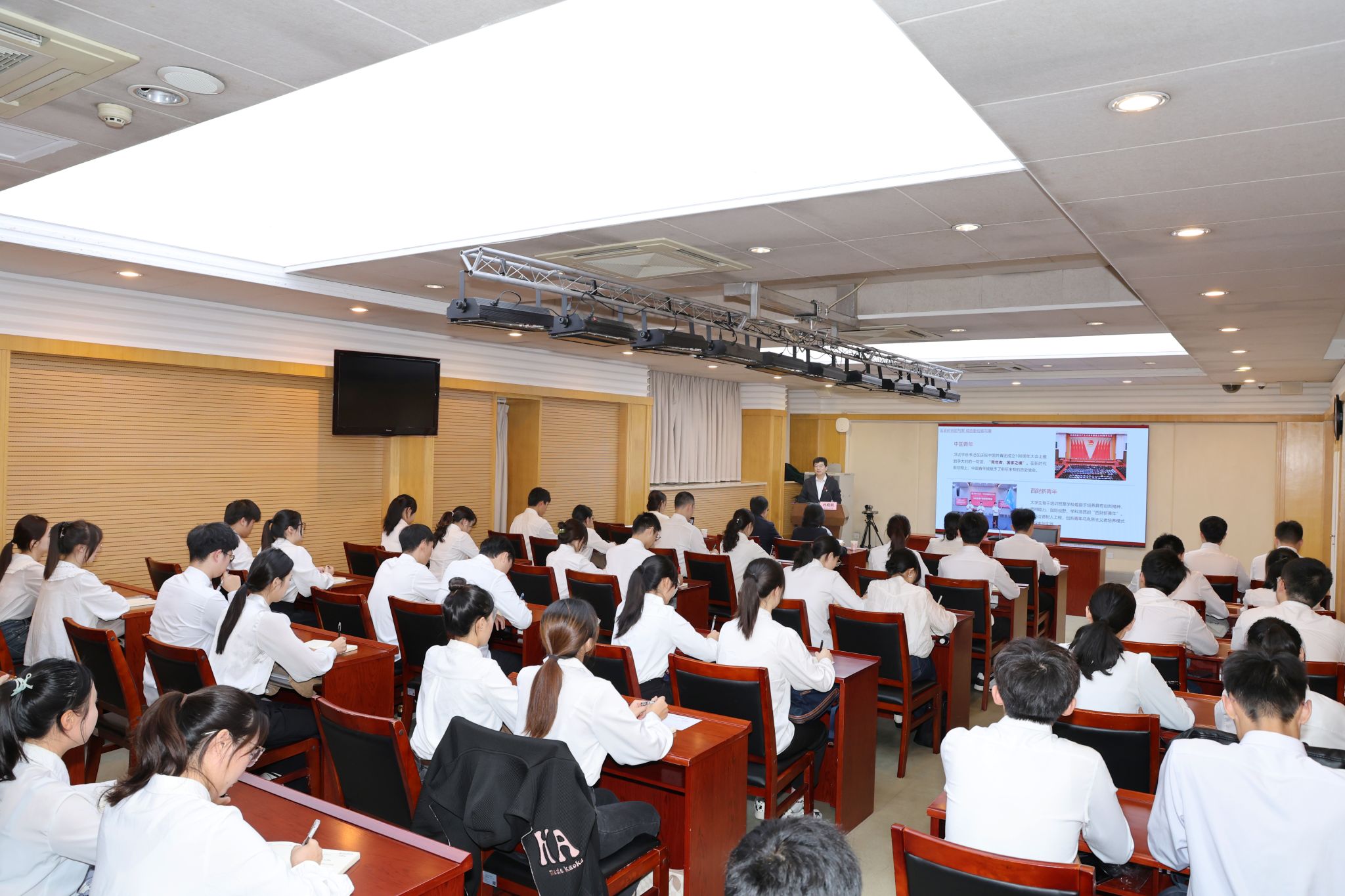 10月22日,学校党委副书记、纪委书记孙殿明以“清风扬正气 廉洁润心田——努力扣好廉洁人生第一粒扣子”为题,为第十期学生骨干培训班全体学员讲授廉洁教育专题思政课。学生工作部部长许晓卉主持。