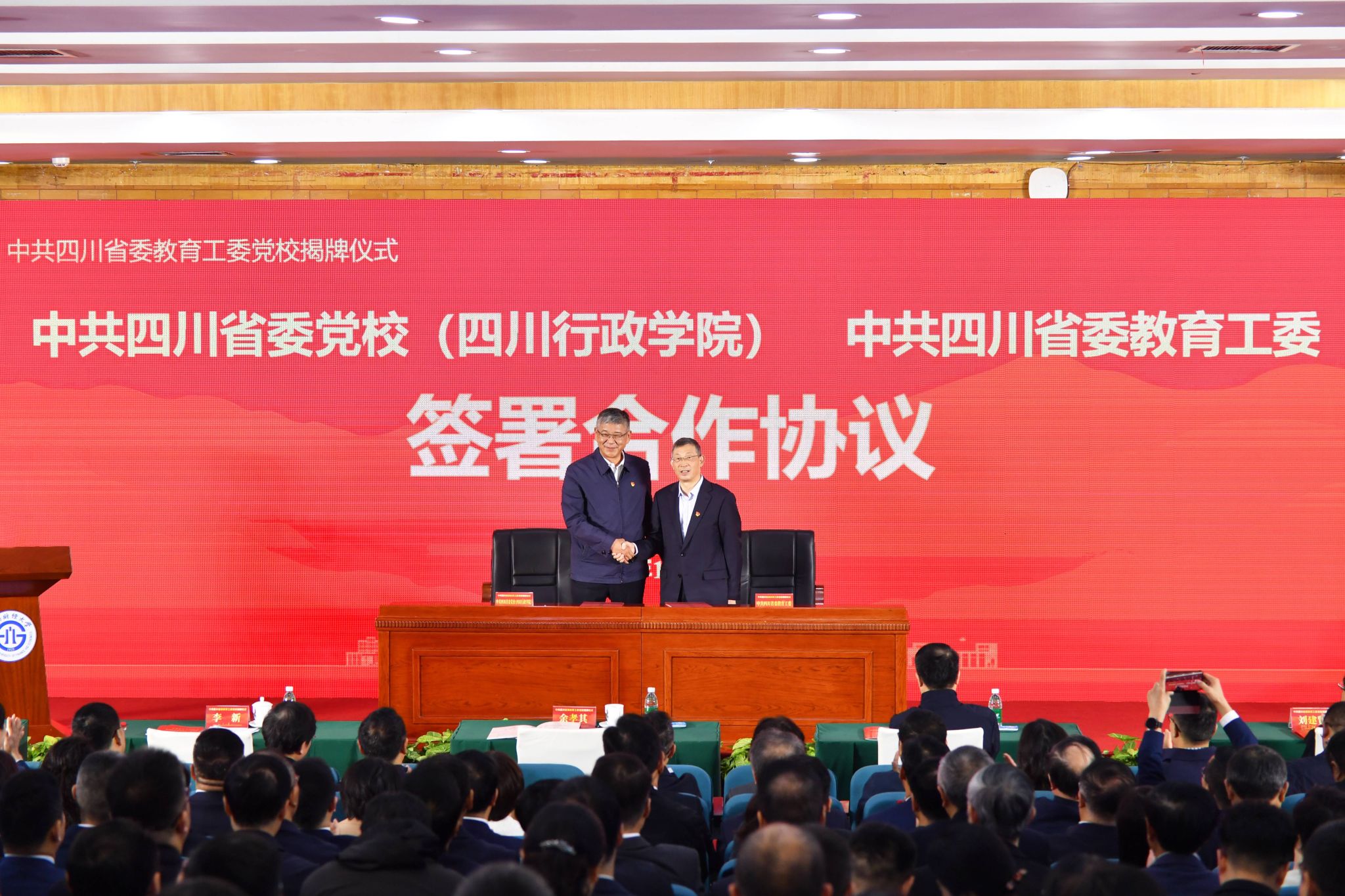 余孝其、李新共同为“中共四川省委教育工委党校”揭牌,并分别代表省委教育工委与省委党校(四川行政学院)签订合作框架协议。省委教育工委还将与国家教育行政学院、小平干部学院、四川两弹一星干部学院以及四川大学等高校干部教育培训基地等单位签订合作协议。