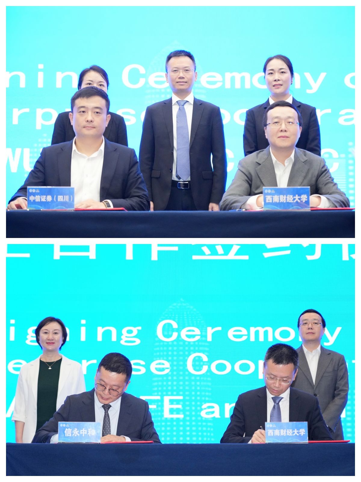 签约仪式环节,学校会计学院作为对口联系单位,分别与中信证券四川分公司、信永中和会计师事务所正式签约。根据协议内容,各方将围绕学科建设、人才培养、合作研究、学术交流等方面开展深入合作。