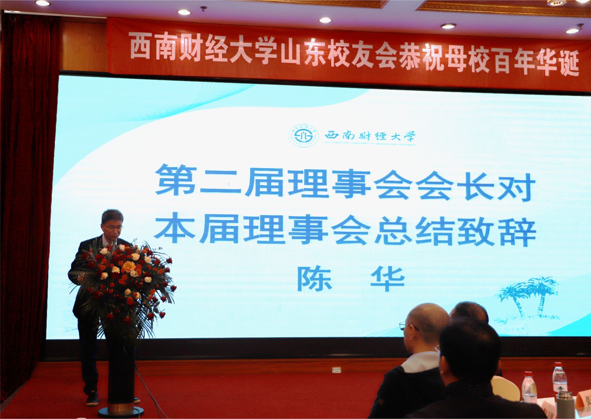 山东校友会第二届理事会会长陈华代表第二届理事会全面回顾了任期内的工作情况,并对山东校友会的未来发展表达了深切期望与美好愿景。山东校友会名誉会长张广鸿与新当选会长程谟伟分别发言。他们对母校和广大校友的信任与支持表达由衷感谢,表示在新的发展起点,将继续凝聚校友力量、传承必赢精神、服务母校发展、展现必赢担当。在母校即将迎来百年华诞之际,将全力以赴,积极参与并推动各项筹备工作,为庆祝活动成功举办贡献校友会的智慧和力量。