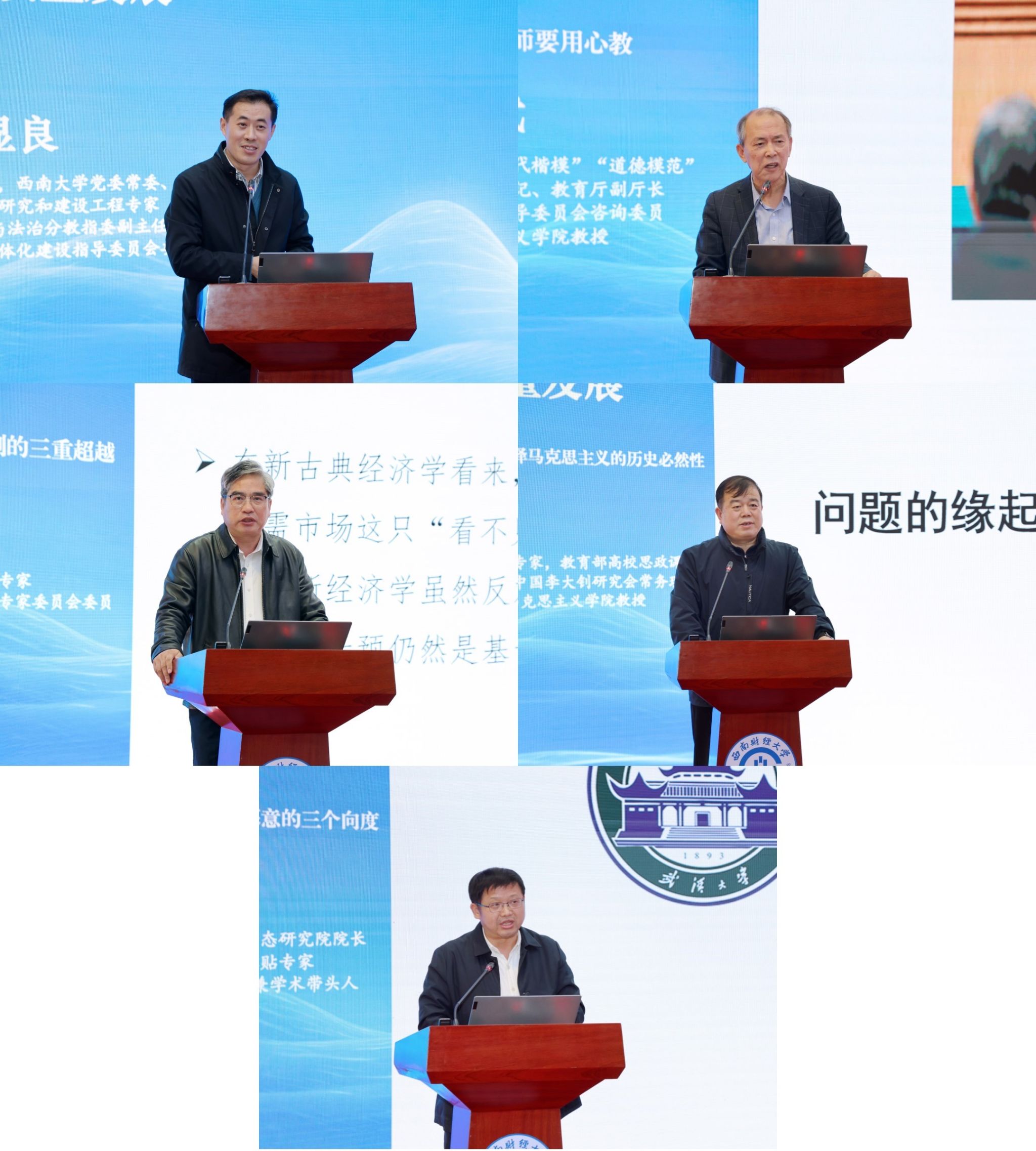主旨发言第一环节,西南大学白显良教授、大连海事大学曲建武教授、北京大学孙来斌教授、南开大学纪亚光教授、武汉大学项久雨教授围绕进一步全面深化改革与思政课高质量发展作主旨报告。第二环节,四川大学蒋永穆教授、电子科技大学吴满意教授、必赢272net入口唐晓勇教授、西南交通大学田永秀教授、四川省委党校(四川行政学院)李刚教授、成都理工大学李奋生教授围绕会议主题作主旨发言。