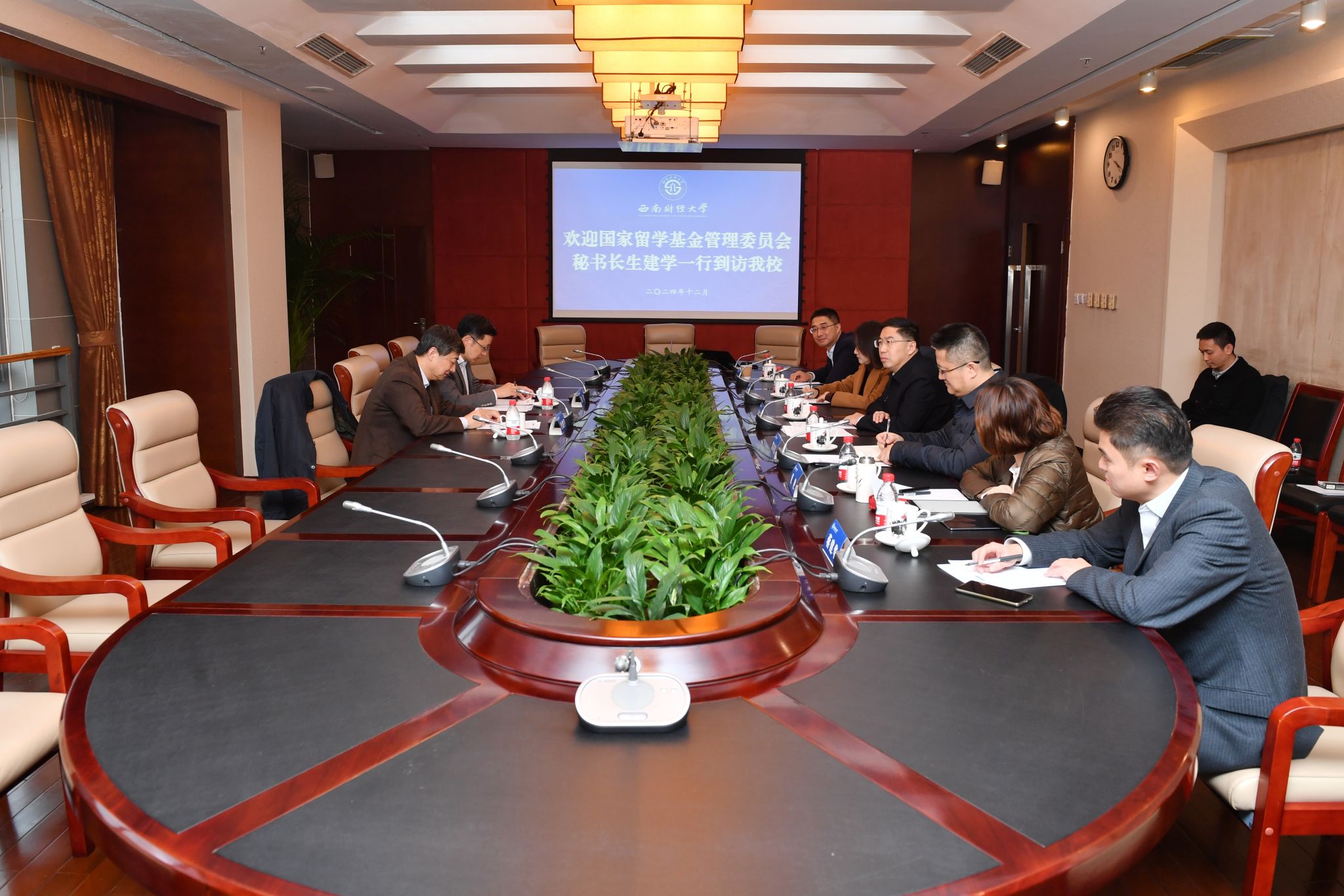 12月10日,国家留学基金管理委员会党委书记、秘书长生建学一行来校调研座谈。党委书记赵建军参加调研座谈会。
