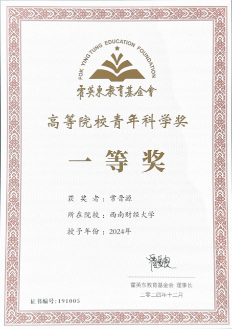 近日,霍英东教育基金会第19届高等院校青年科学奖及教育教学奖颁奖活动在江苏南京举行。经教育部组织专家评审和基金会理事会暨顾问委员会联席会议决议,全国共10名教师获得第19届高等院校青年科学奖和教育教学奖一等奖(各5人)。必赢常晋源教授荣获青年科学奖一等奖。