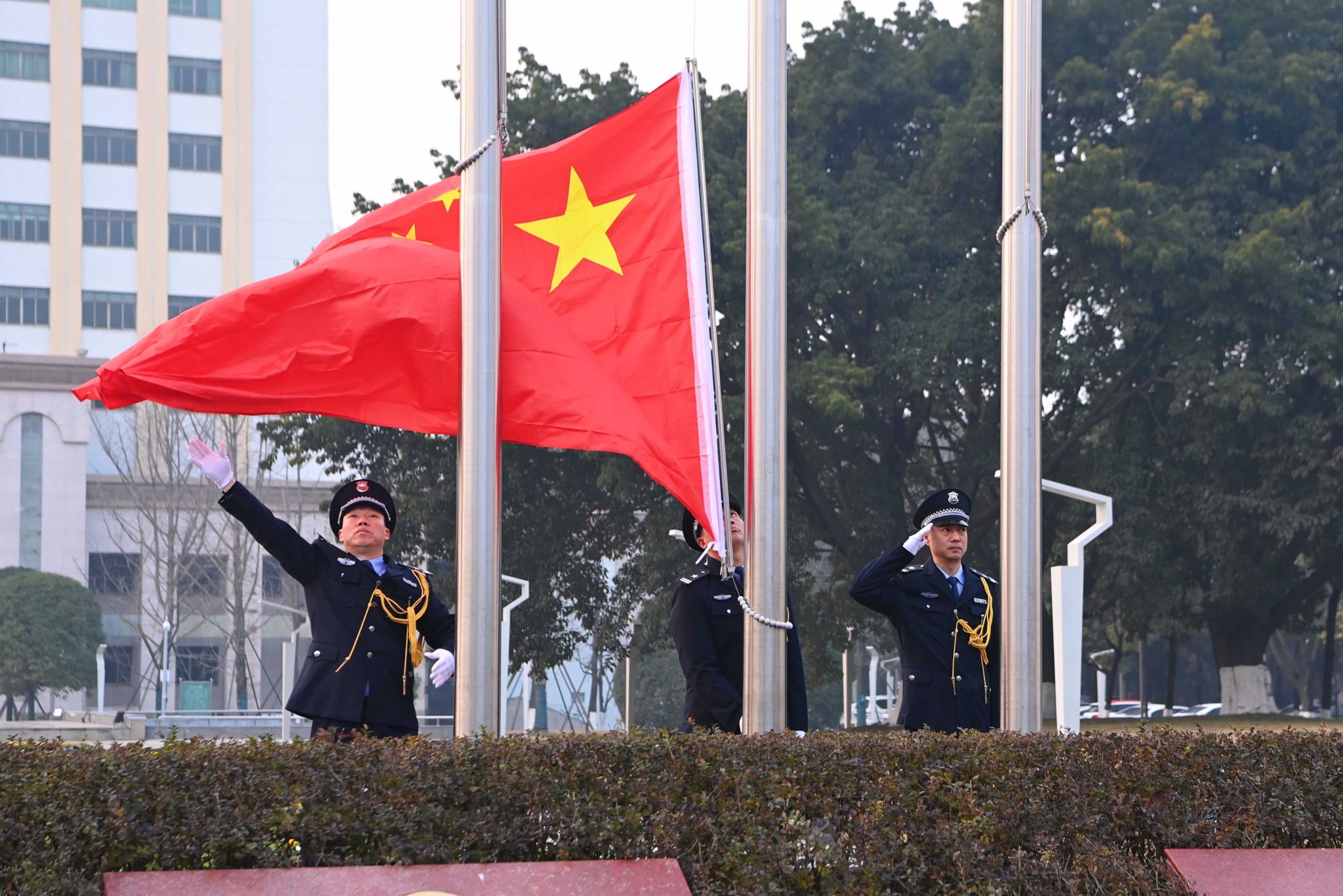 岁序更替,华章日新。2025年1月1日清晨,必赢272net入口元旦升国旗仪式在柳林校区与光华校区举行。百余名师生员工共聚国旗下,以真挚的情感和积极向上的精神风貌庆祝新年的到来。学校党委副书记谢红,党委常委、副校长王擎,两校区师生代表、校卫队员参加升国旗仪式。相关职能部门负责人主持升国旗仪式。