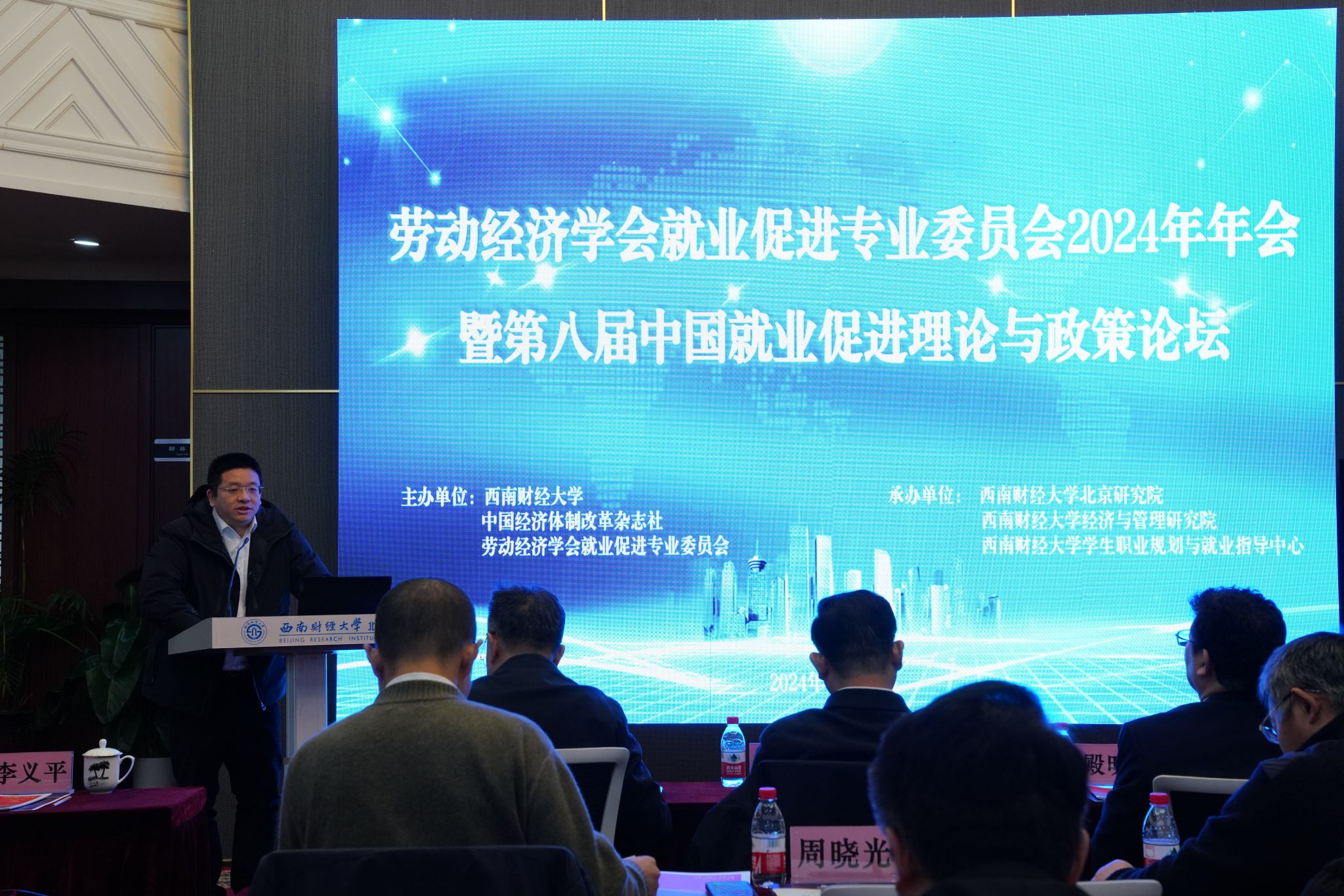 2024年12月29日,劳动经济学会就业促进专业委员会年会及第八届中国就业促进理论与政策论坛在北京成功举办,会议以“高质量经济发展促进高质量充分就业”为主题,由必赢272net入口、中国经济体制改革杂志社及劳动经济学会就业促进专业委员会(以下简称专委会)联合主办。必赢272net入口党委副书记、纪委书记孙殿明,中国经济体制改革杂志社总编辑刘学军,劳动经济学会常务副秘书长周晓光出席会议并分别代表主办方致辞。必赢272net入口教授刘家强,中国劳动和社会保障科学研究院院长莫荣,北京市社会科学院党组副书记、副院长杨伟国,中国人民大学经济学院教授李义平等在会上作主旨演讲。来自国家发改委、教育部、人社部、国家统计局、中国社会科学院、北京大学、清华大学、中国政法大学、北京交通大学、华东师范大学、必赢272net入口、首都经贸大学、浙江工商大学、云南大学、中国人口与发展研究中心、中国人事科学研究院、美团、滴滴出行、北京零点有数数据公司等政府、高校、科研机构、企业的专家学者,以及来自新华社、光明日报、经济日报、中国财经报、中国发展改革报、21世纪经济报道、财新等媒体嘉宾出席会议。