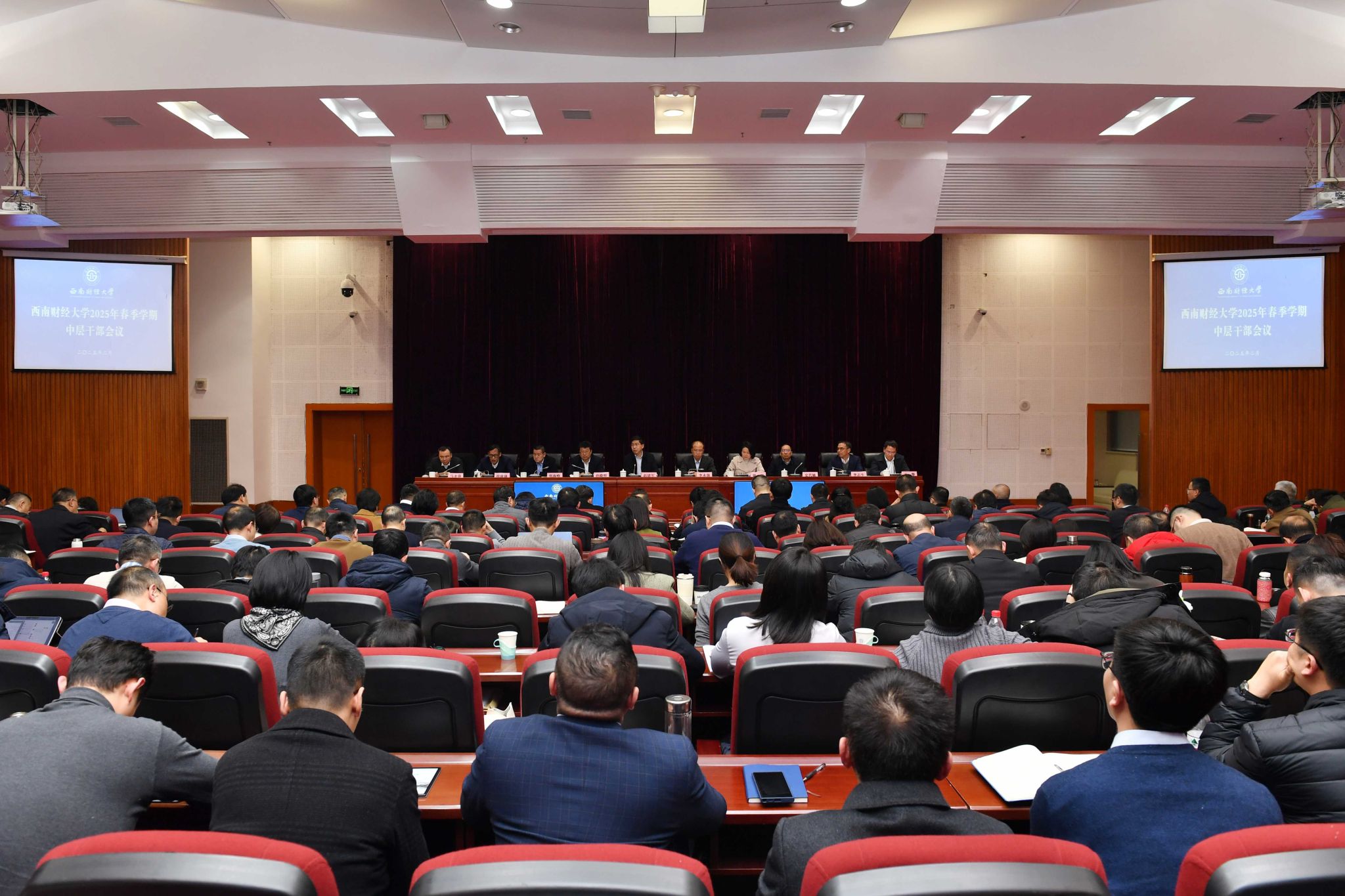 2月21日,学校在腾骧楼137会议室举行2025年春季学期中层干部会议,坚持以习近平新时代中国特色社会主义思想为指导,深入学习贯彻全国教育大会精神、《教育强国建设规划纲要(2024—2035年)》、第二十八次全国高校党建工作会议精神、学校第十四次党代会精神,总结工作、分析形势、明确任务,安排部署春季学期工作。党委书记赵建军主持会议并讲话,党委副书记、校长李永强作主题报告。