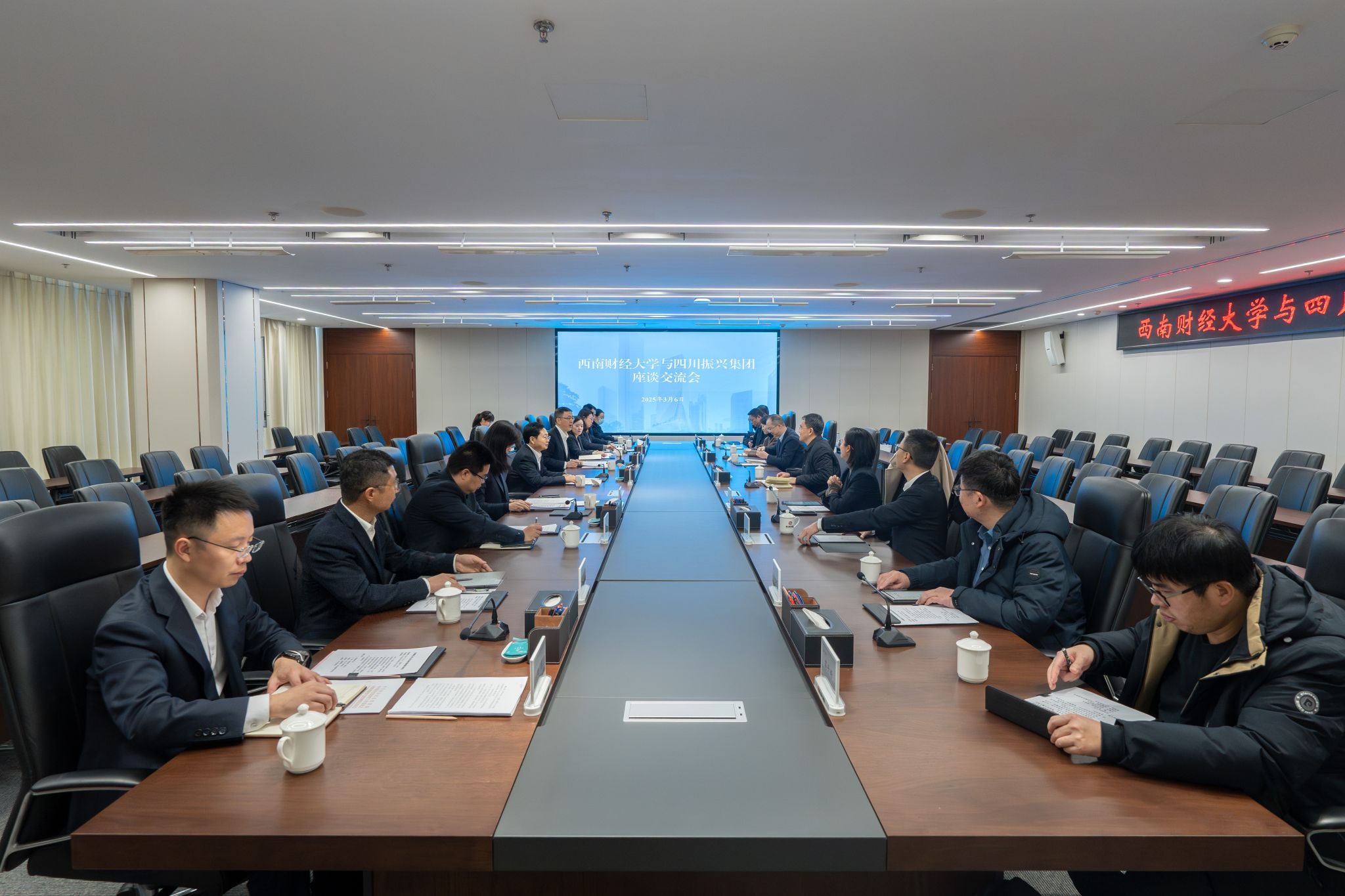 3月6日上午,学校党委常委、副校长王擎带队前往四川产业振兴基金投资集团有限公司,座谈交流合作事宜并看望校友。四川振兴集团党委副书记曾显斌、总会计师武金波、党委组织部部长杜敏等热情接待学校一行。