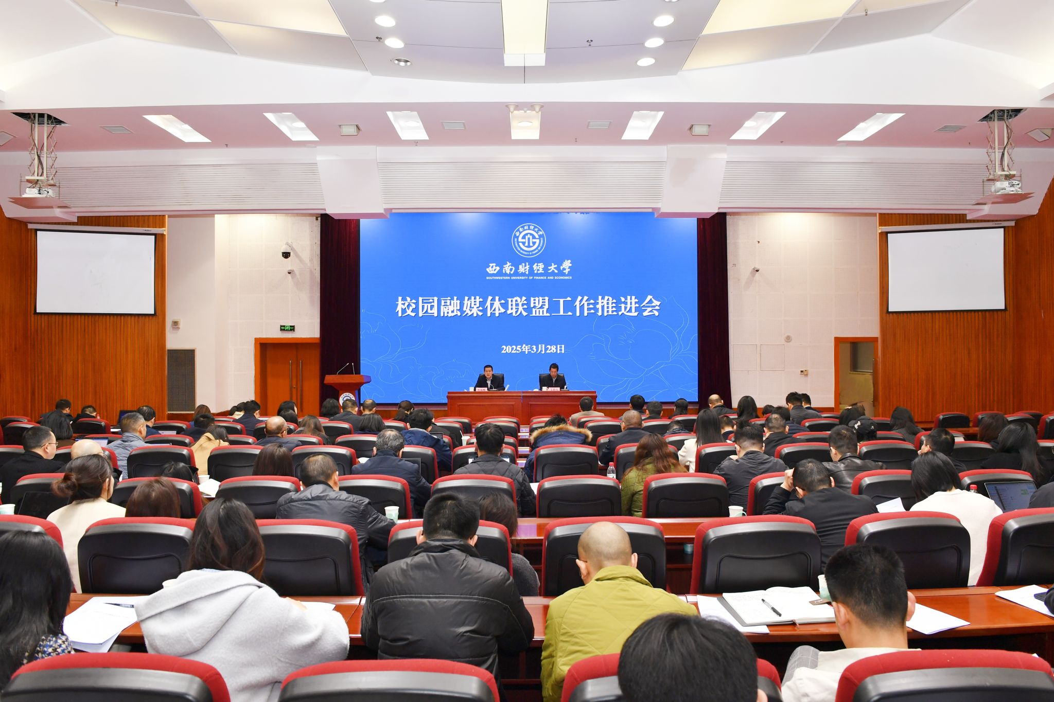 3月28日,学校在腾骧楼137会议室召开校园融媒体联盟工作推进会,深入学习贯彻习近平文化思想、习近平总书记关于媒体融合发展的重要论述,全面落实教育部党组、四川省委有关决策部署和学校第十四次党代会部署要求,全力推进校园融媒体联盟建设,推动校园媒体融合纵深发展。党委副书记明海峰出席会议并讲话。