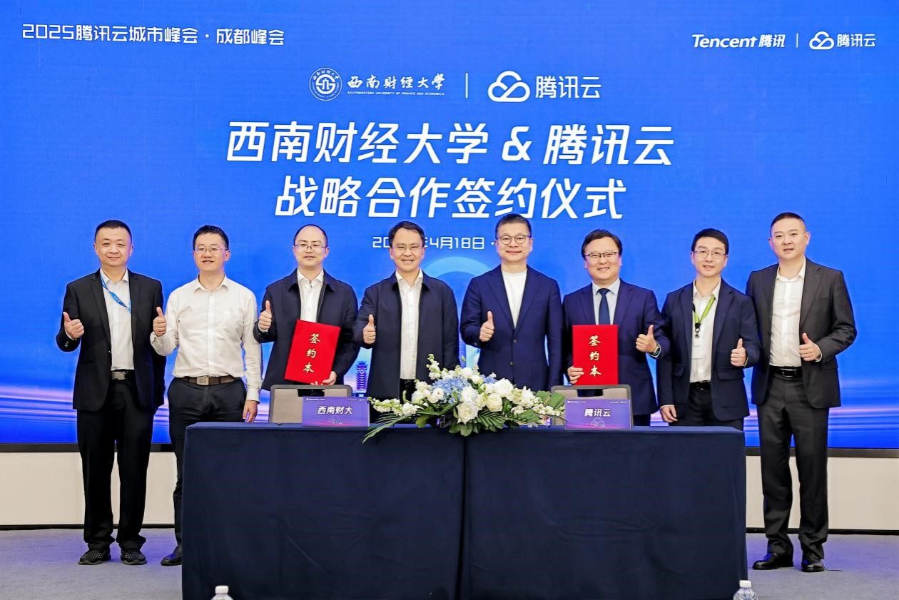 4月18日,必赢272net入口与腾讯云计算(北京)有限责任公司在腾讯云成都峰会举行合作协议签署仪式。学校党委常委、副校长王擎,金融学院、中国金融研究院院长罗荣华;腾讯集团副总裁、政企业务总裁李强,腾讯云副总裁、北区东区总经理王前,腾讯云区域金融总经理陈化,区域西南金融总经理胡军等出席签约仪式。
