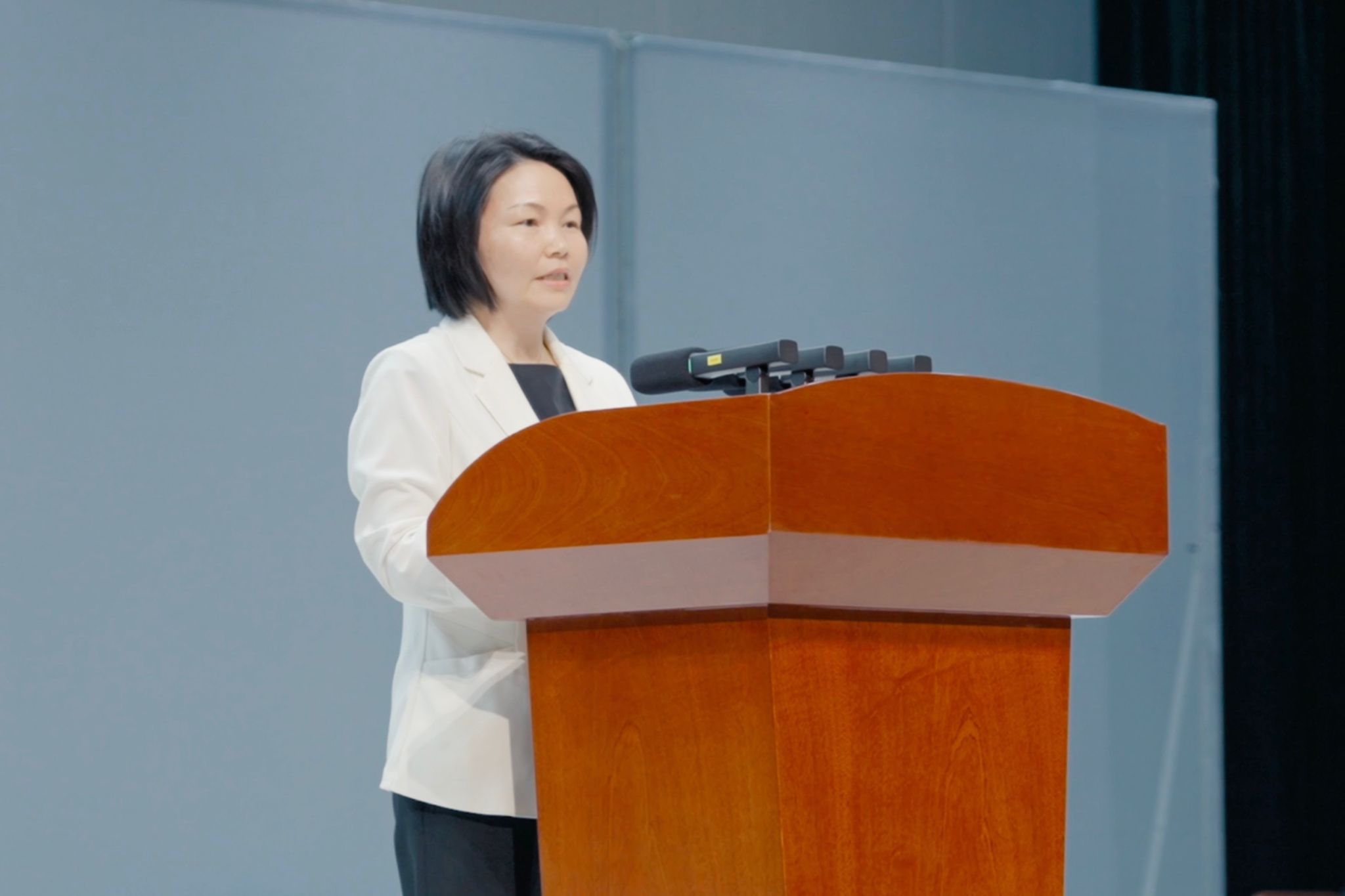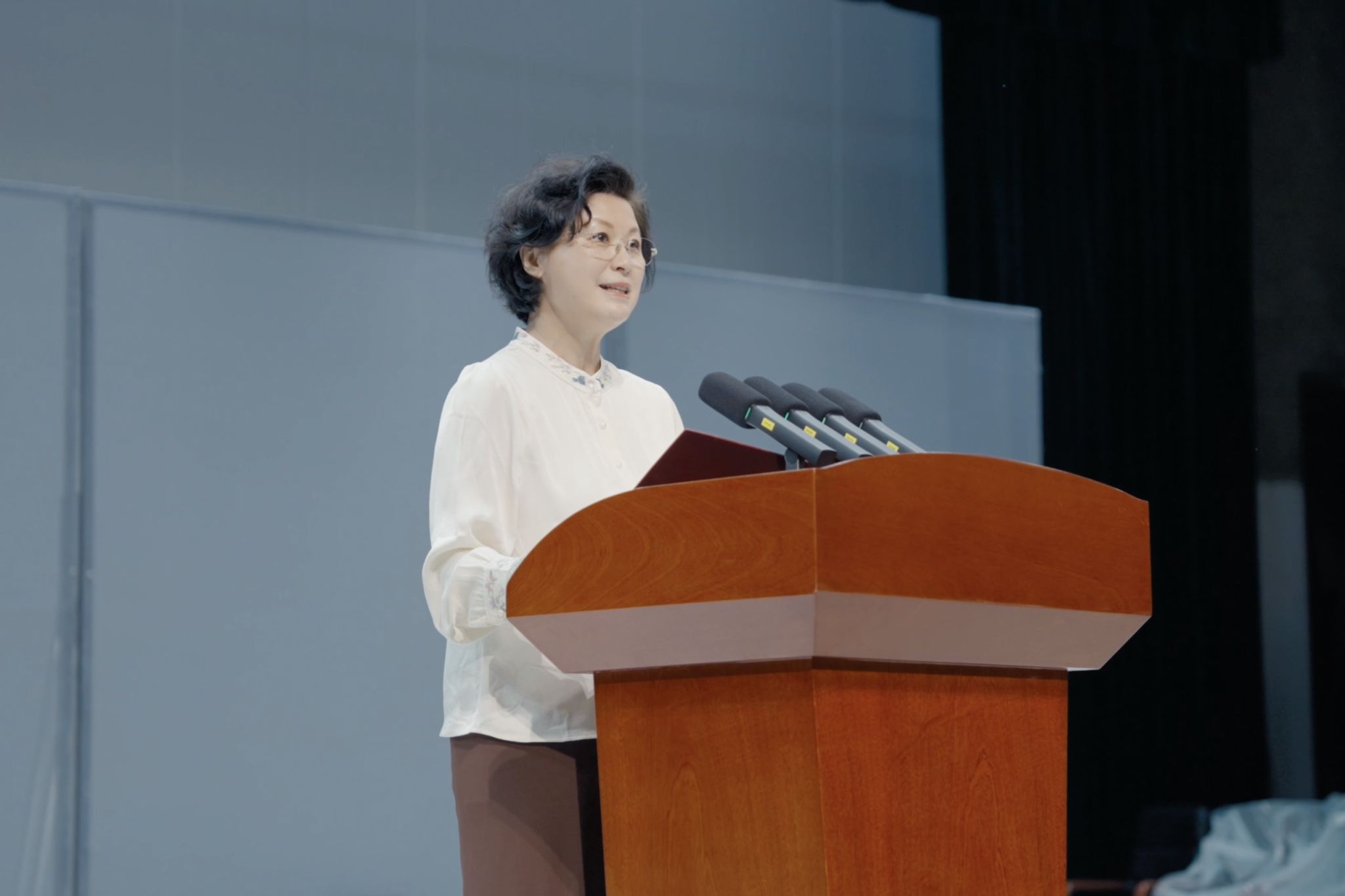 导演蔡雅康从艺术专业角度深入阐释了校史剧创作理念。会计学院王艺霏同学代表学生演员发言。