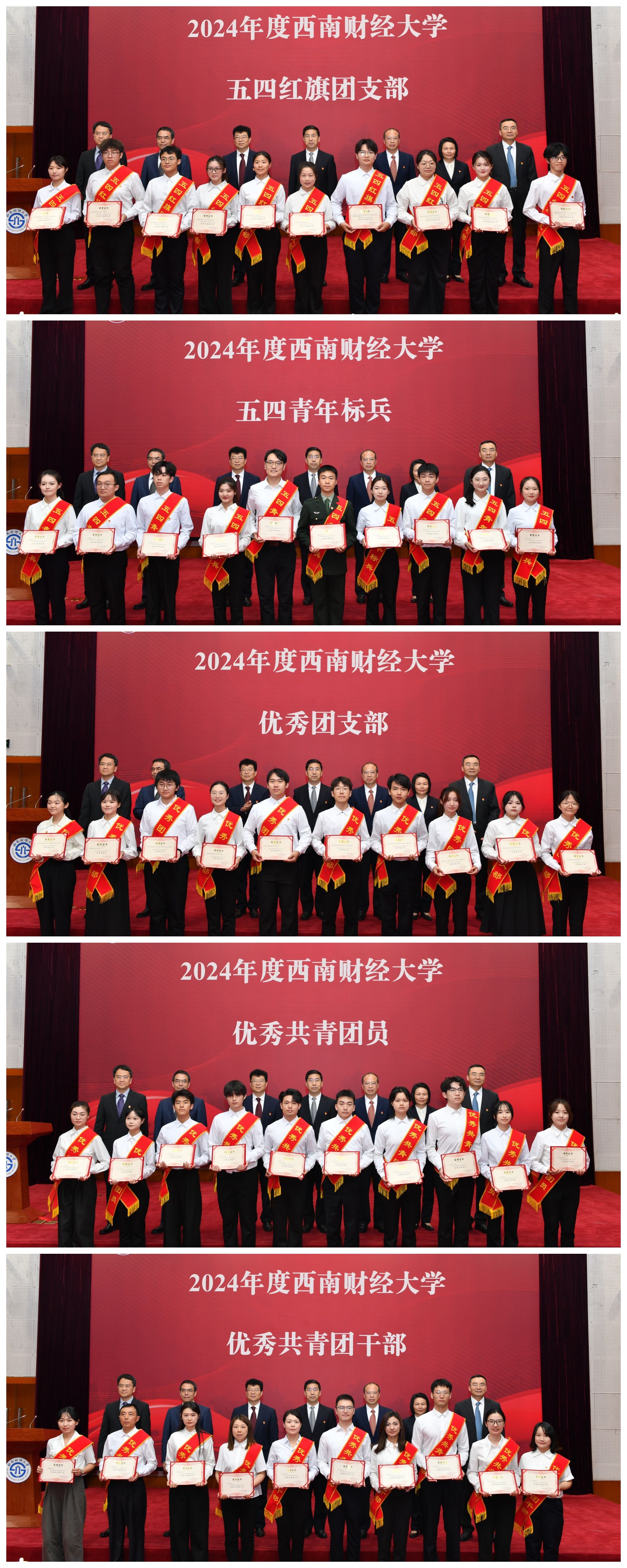 党委副书记谢红宣读《关于表彰2025年度“五四红旗团支部”“五四青年标兵”“优秀团支部”“优秀共青团干部”“优秀共青团员”的决定》。校领导为获奖集体和个人代表颁发荣誉证书。