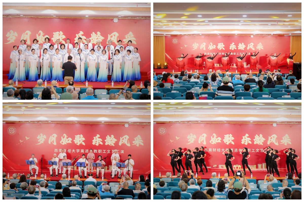 文艺汇演分为“红韵传承 银龄芳华”“武韵国风 舞动风华”“初心起航 时代新生”“此时礼赞 共筑未来”四个篇章。100余名老同志为大家带来合唱、舞蹈、民乐、京剧、走秀等11个精彩纷呈的节目。参演人员以饱满热情、精彩表演,展现了离退休教职工们积极向上的精神风貌和丰富多彩的晚年生活。舞台上的他们宛如熠熠生辉的明星,绽放着独特的光芒,赢得台下阵阵掌声与喝彩。现场气氛欢快祥和,每个节目的演出都饱含着老同志们对学校的深厚感情和对未来的美好期待。