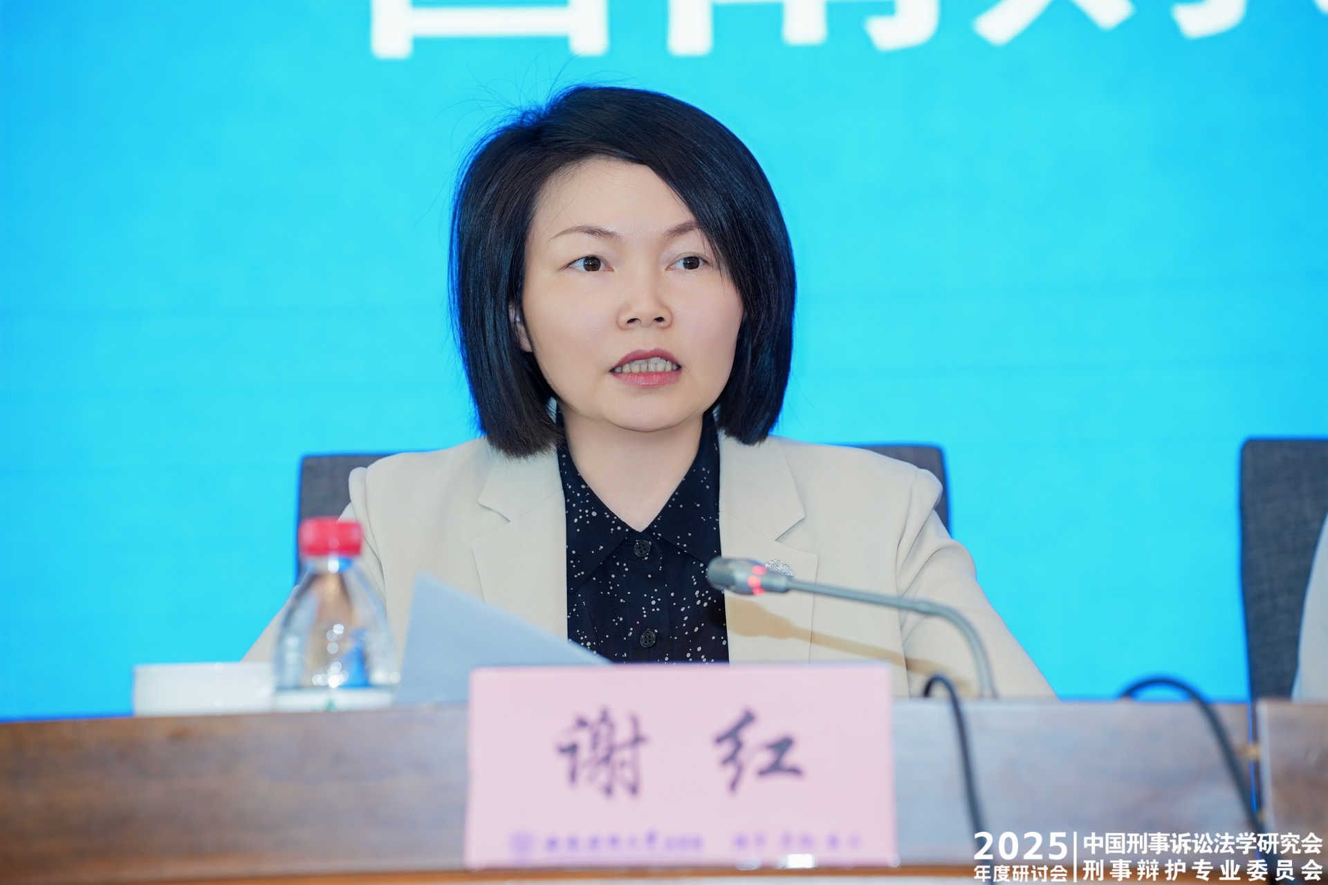 学校党委副书记谢红出席并致辞。她指出,党的二十大将推进律师辩护全覆盖纳入深化司法改革重点,刑事辩护不仅是宪法保障人权的体现,更是检验司法公正的重要标尺。此次研讨会是对构建法学自主知识体系的积极探索,也为学校献上了一份学术厚礼,期待各界嘉宾在研讨中畅所欲言,共同为推动我国刑事诉讼制度科学发展建言献策。