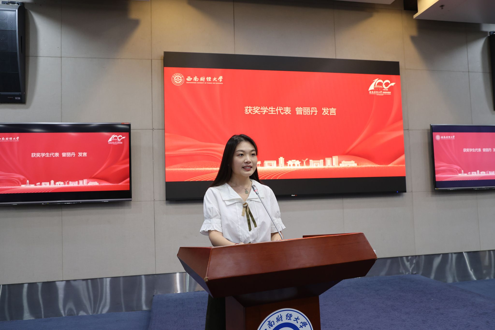 获奖同学代表、金融学院2022级博士研究生曾丽丹在发言中表示,学校百年华诞之际获此殊荣既是荣誉也是责任,她将传承曾康霖教授“扎根中国、以民为本”的治学精神,深入金融风险管理研究,践行必赢人投身金融强国建设的使命担当。