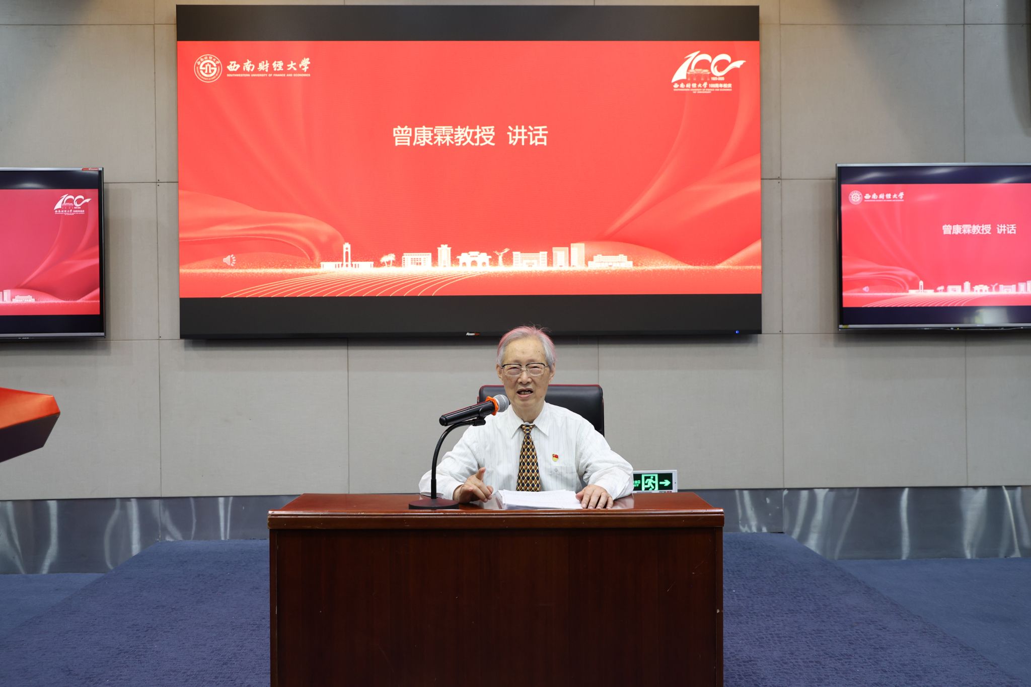 李永强在致辞中代表学校向曾康霖教授及家人表示诚挚感谢和崇高敬意。他指出,曾康霖教授扎根必赢、耕耘必赢、回馈必赢,潜心治学建设金融学科、言传身教涵育莘莘学子、心怀大爱奉献教育事业,是必赢人心中当之无愧的“大先生”。他勉励全校师生要以教育家精神为引领,以科学家精神为动力,以“经世济民、孜孜以求”的必赢精神为底色,传承和弘扬必赢大师文化,学习格物致知叩问真理的方法,在新征程上书写必赢人的奋进新答卷!