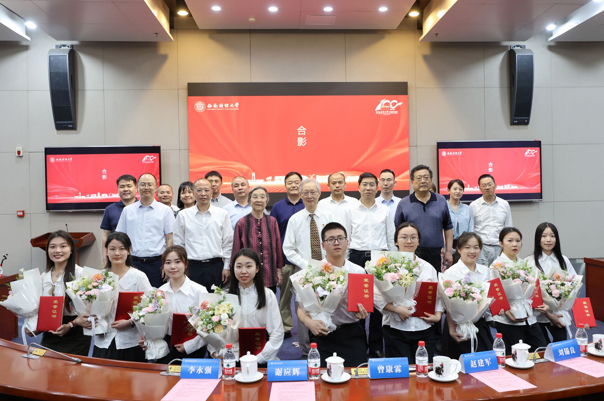 曾康霖、赵建军、李永强、刘锡良和学院(研究院)负责人为获奖学生颁奖。获奖同学向曾康霖教授及家人献花,表达诚挚感谢和深深敬意。