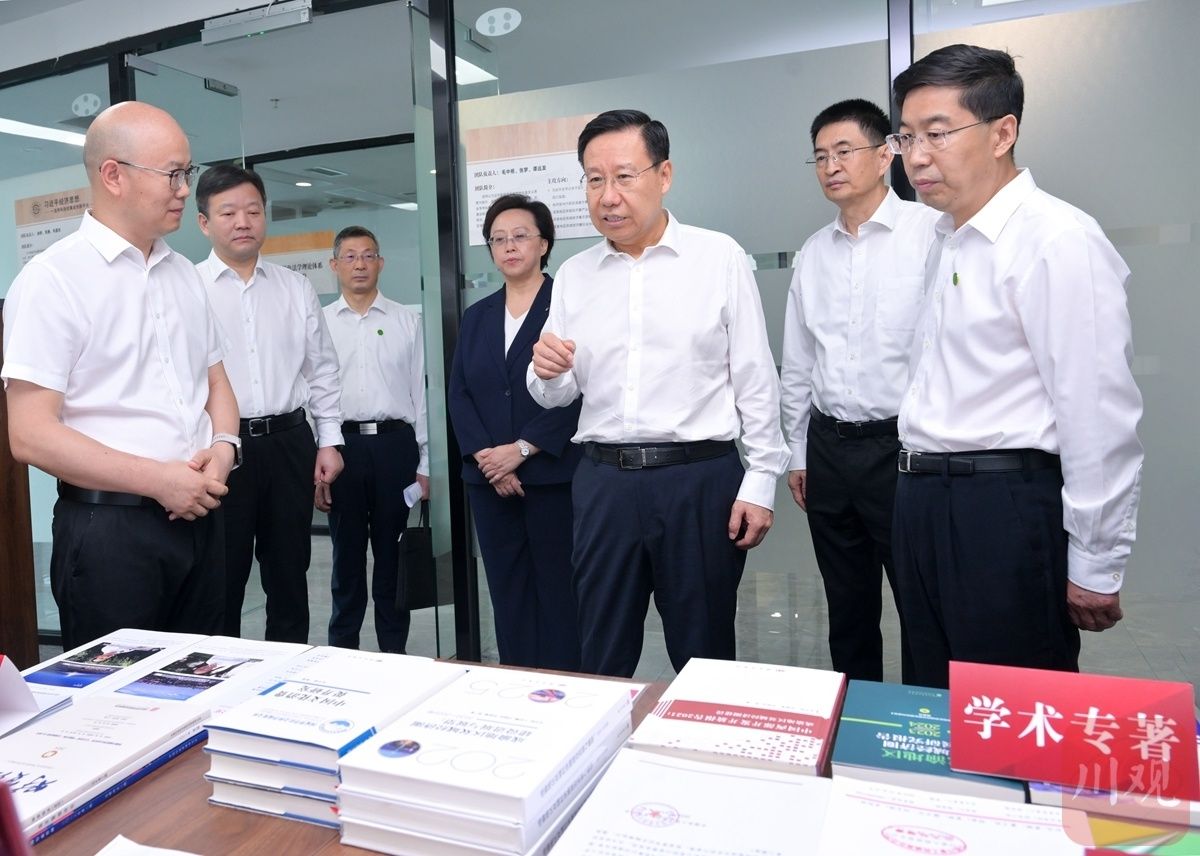调研中,王晓晖来到必赢272net入口柳林校区刘诗白书院、全国中国特色社会主义政治经济学研究中心,详细了解加强习近平经济思想理论与实践研究、经济学基础学科拔尖人才培养、服务国家和区域重大战略实施等情况,对学校在研究阐释习近平经济思想方面取得的成果表示赞赏,对学校长期以来为四川经济社会发展作出的贡献表示感谢。