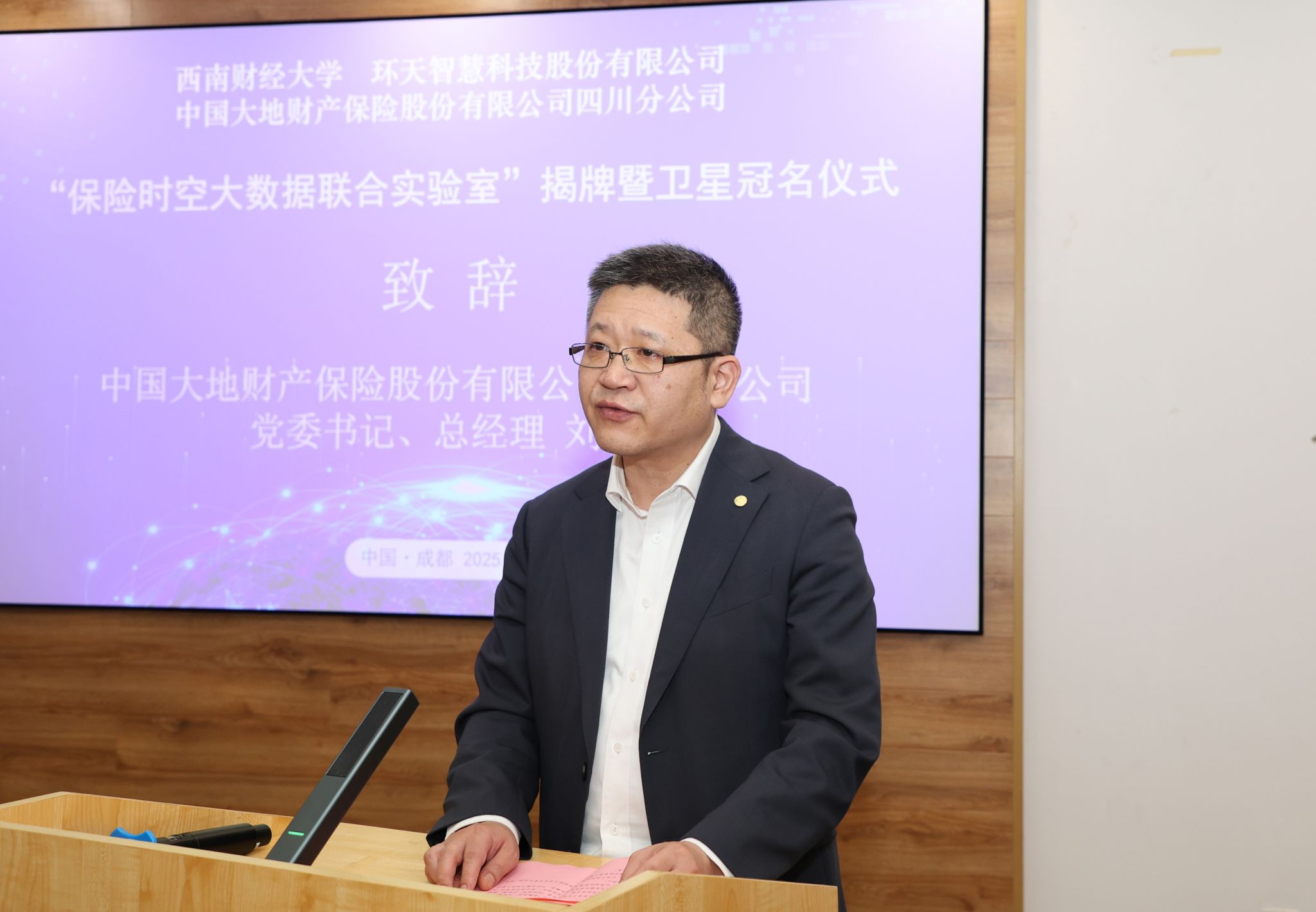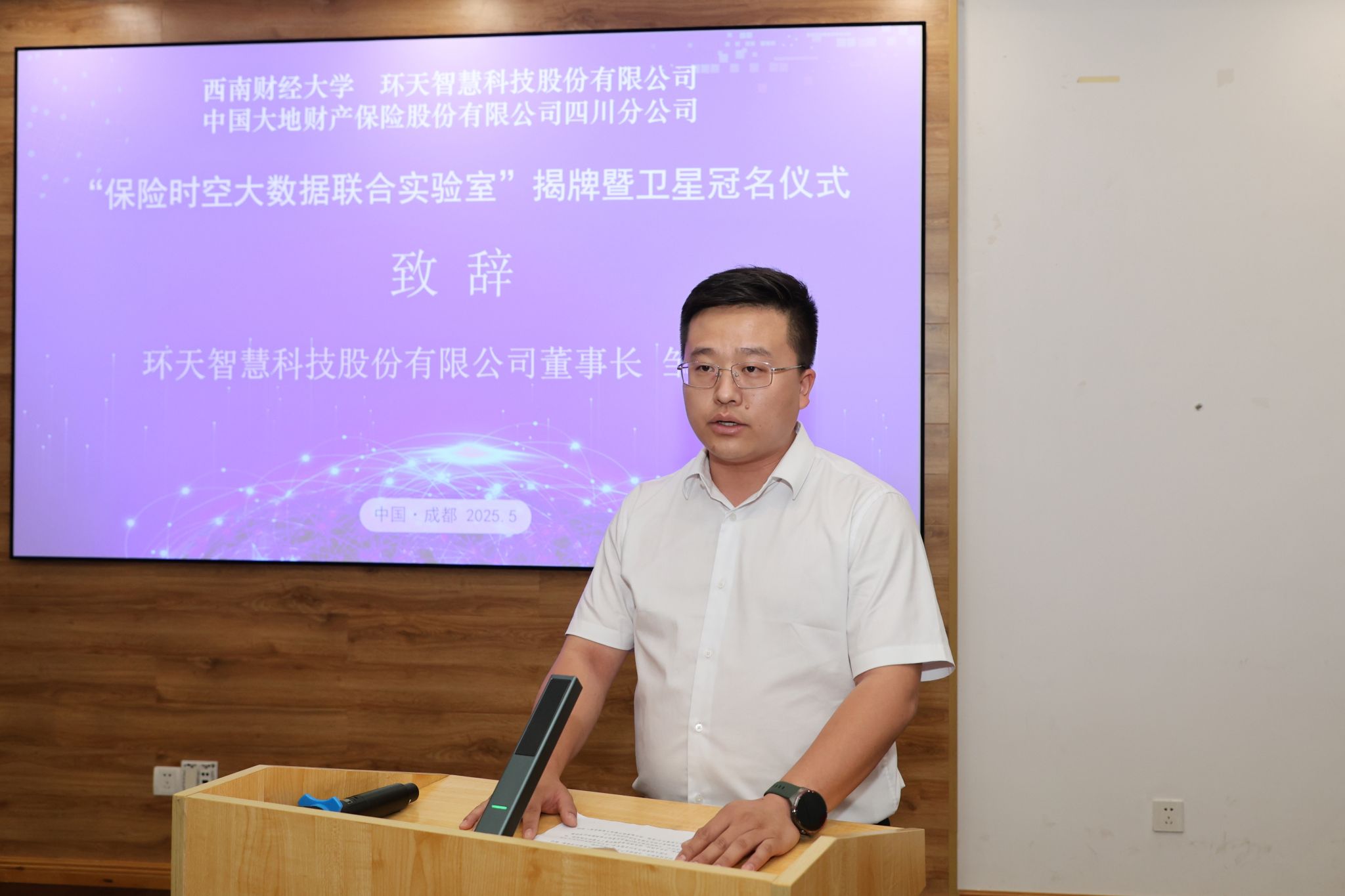 王擎在致辞中表示,学校获赠卫星冠名权意义深远。未来,学校将借助环天智慧在时空大数据领域技术实力,结合自身金融保险学科专业优势,以及中国大地保险四川分公司行业经验,以卫星资源为依托,开展前瞻性保险时空大数据研究,打造“科研创新、人才培养、社会服务”三位一体平台,努力推动学校适应保险行业数字化转型,为教育强国、金融强国和行业发展建设贡献力量。