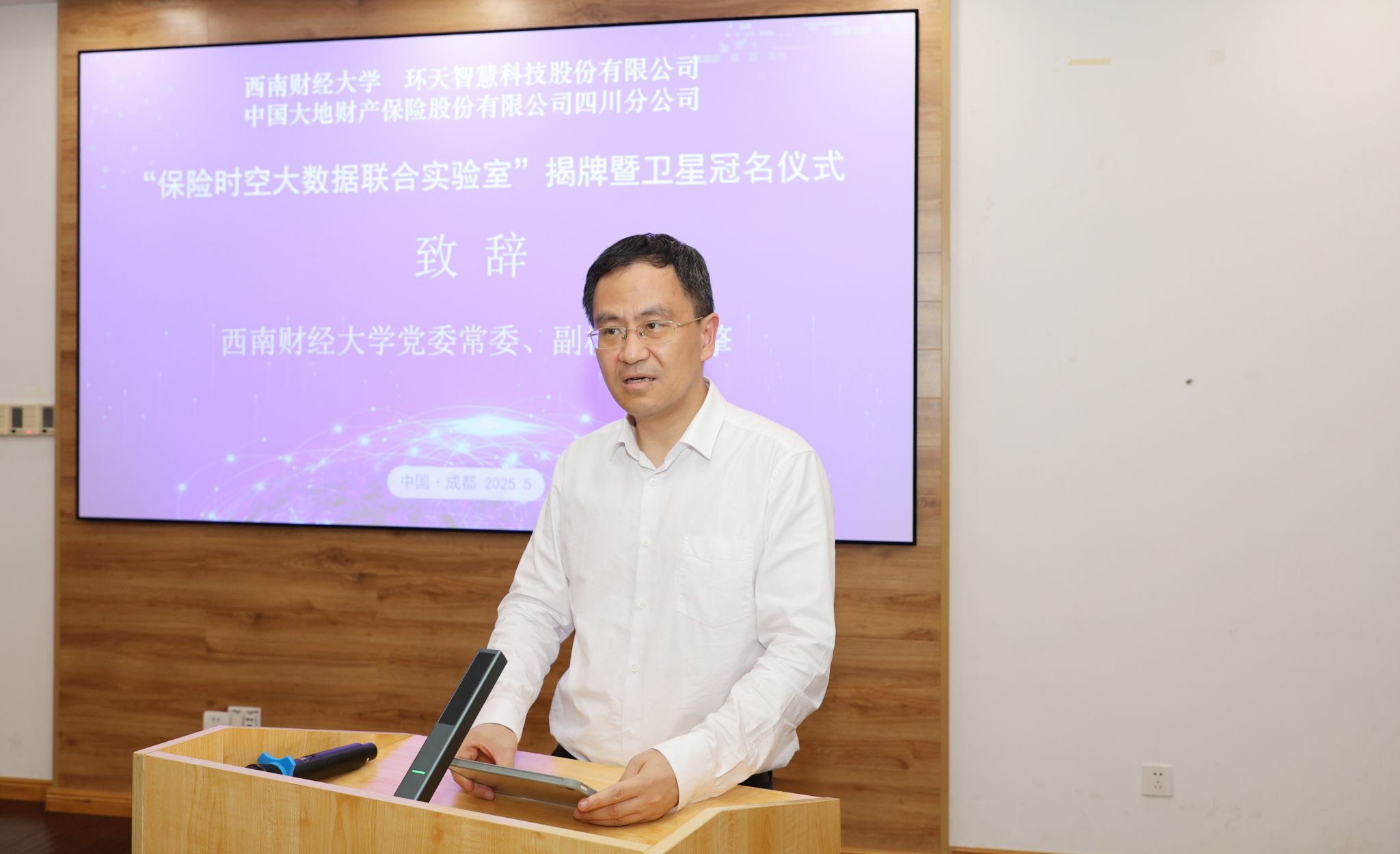 5月27日,学校“保险时空大数据联合实验室”揭牌暨卫星冠名仪式在柳林校区举行。学校党委常委、副校长王擎,环天智慧科技董事长邹云坤,中国大地保险四川分公司总经理刘波等出席仪式,金融学院、中国金融研究院院长罗荣华主持仪式。