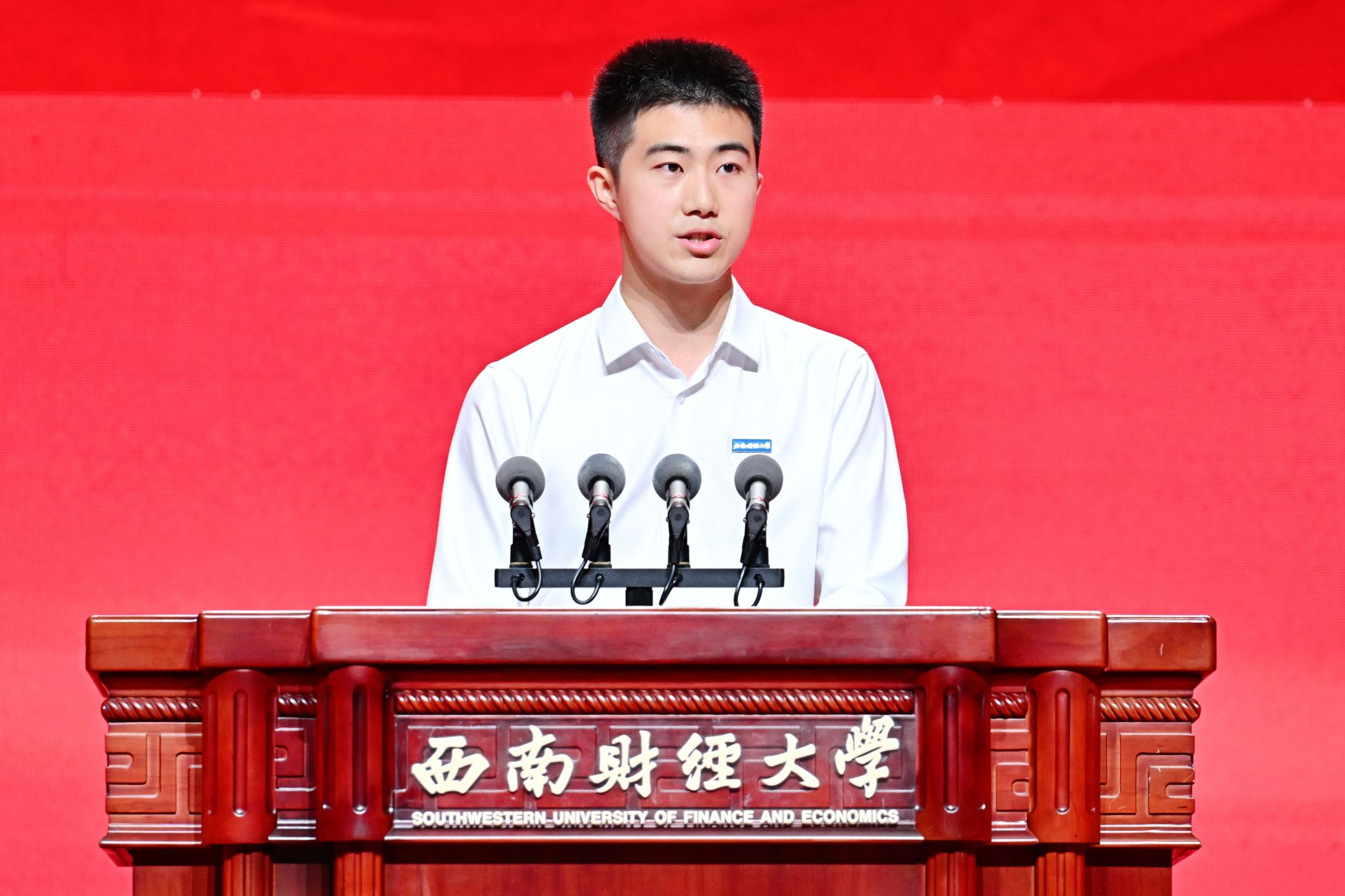 学生代表、国际商学院本科生何昳矾带着满腔热忱献上了对世纪必赢的真挚祝福、表达了请祖国放心的青年担当。他表示,全体必赢青年将带着母校所滋养的家国情怀、所赋予的求真本领、所淬炼的奋进品格一路成长、一路奋斗,在“新财经”教育中探索求知,在祖国大地上实践奉献,以实际行动兑现“逐梦一流,强校有我;民族复兴,强国有我”的青春誓言。